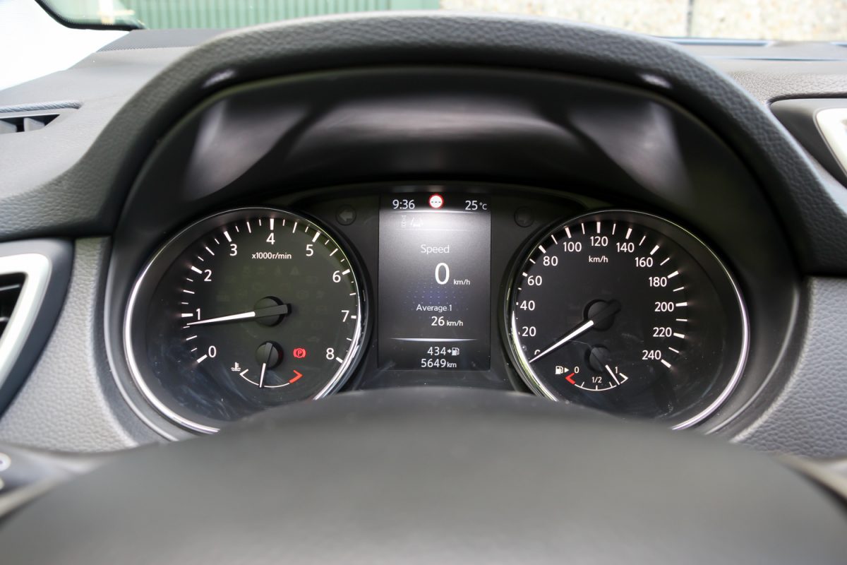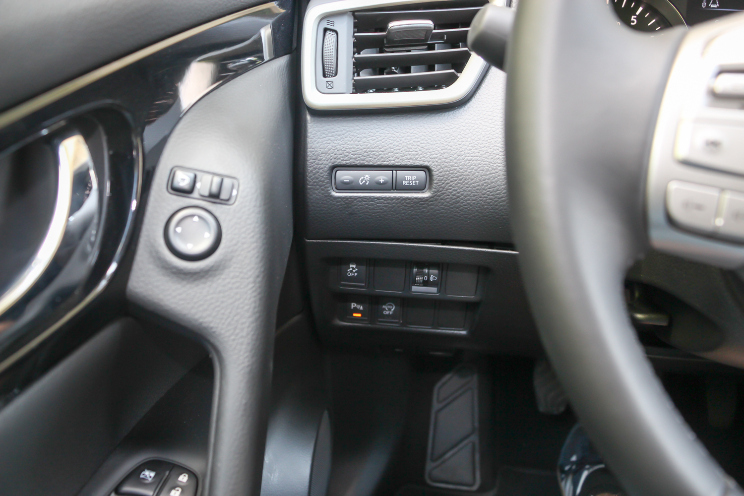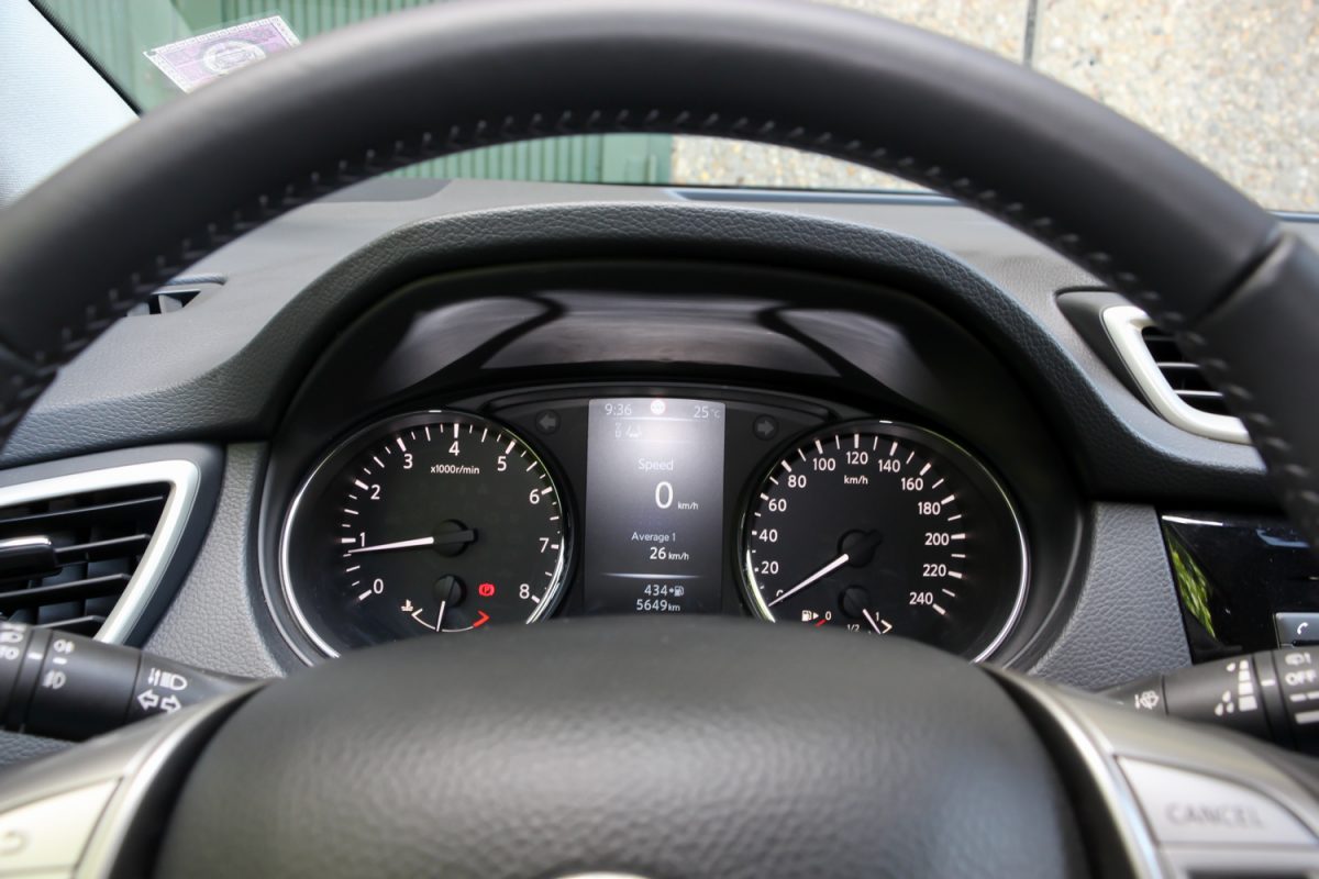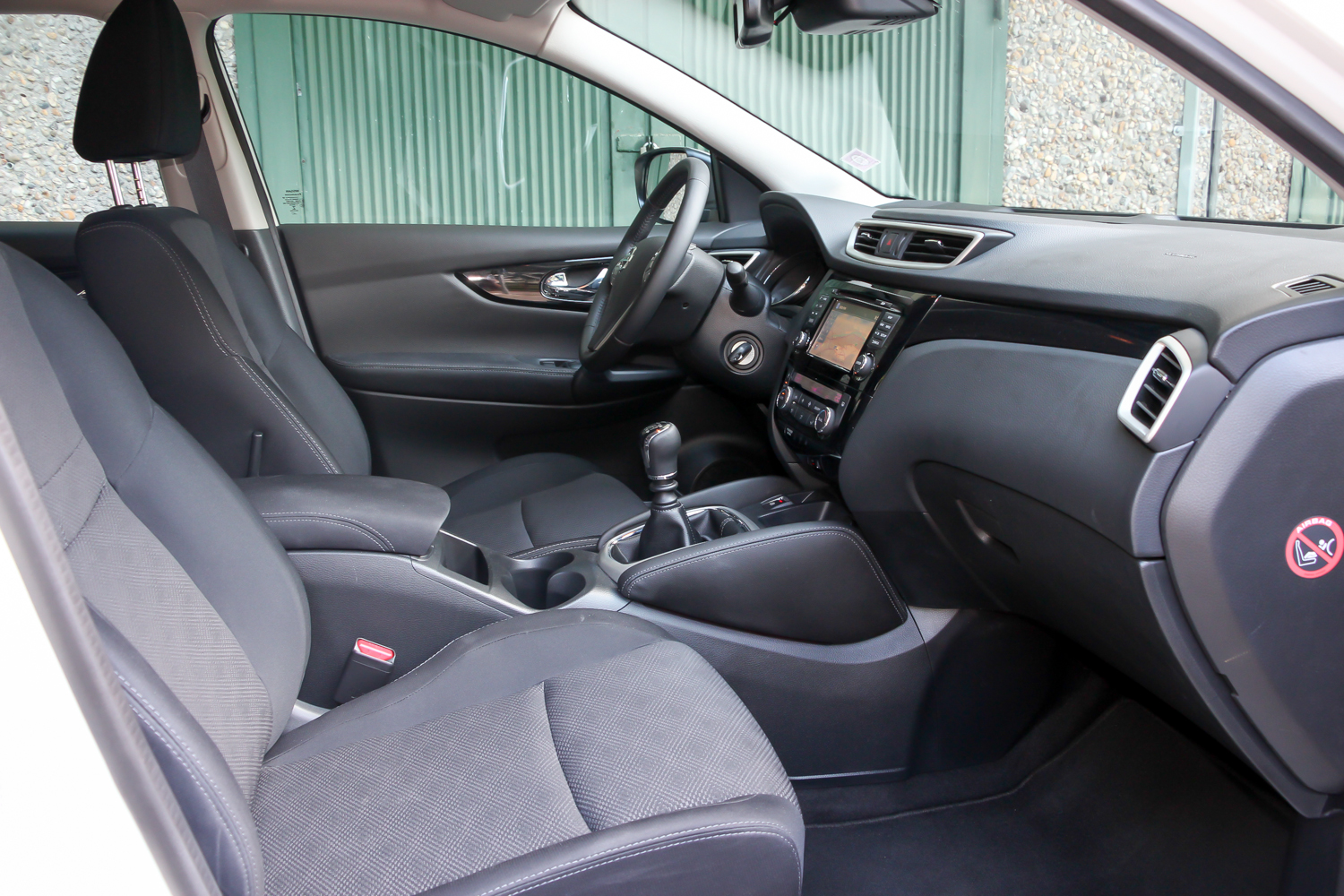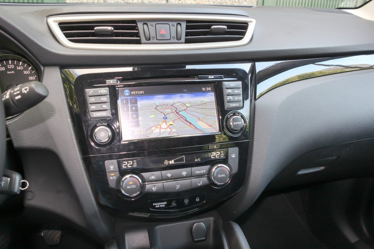 A Horvátországban meghajtott kocsinál ez egy jobb felszereltségű, a közepes szintet jelentő Acenta kivitelű tesztautó. Ebben már van kétzónás automata klíma, bőrkormány, esőérzékelő, deréktámasz, 17 colos alufelni, ködlámpa, 6 hangszórós hifi, hátsó kartámasz és szebb a kárpitozása. Ezek bőven megérik az alapkivitelhez képest felszámított felárat. A baj, hogy tételenként nem lehet őket összelegózni. A műszerfali 5 colos kijelző és a multikormánnyal vezérelt fedélzeti számítógép alap, ahogy az is, hogy könnyen kezelhető és átlátható a menüje. A tesztautó árát és értékét még a biztonsági csomaggal és a Nissan Connecttel növelték. Az előbbiben ráfutásra és sávelhagyásra figyelmeztetés, táblafelismerő, parkolószenzorok, automata reflektor és elektorkróm visszapillantó tükör van. Az utóbbi pakkot navigációs rendszer, 7 colos színes kijelző, USB, MP3 és iPod csatlakozó, tolatókamera és Bluetooth alkotja. Áruk így 200, illetve 350 ezer forintért reális, mert részeik jól működnek. Ez megint rendben van, a gond csak az, ha vágynánk parkolóasszisztensre, kulcs nélküli indításra, üvegtetőre, holttérfigyelőre, vagy a menetfényen túl LED-es fényszórókra is, akkor azokat csak együtt kaphatnánk meg a 7,2 milliós Tekna szinten.