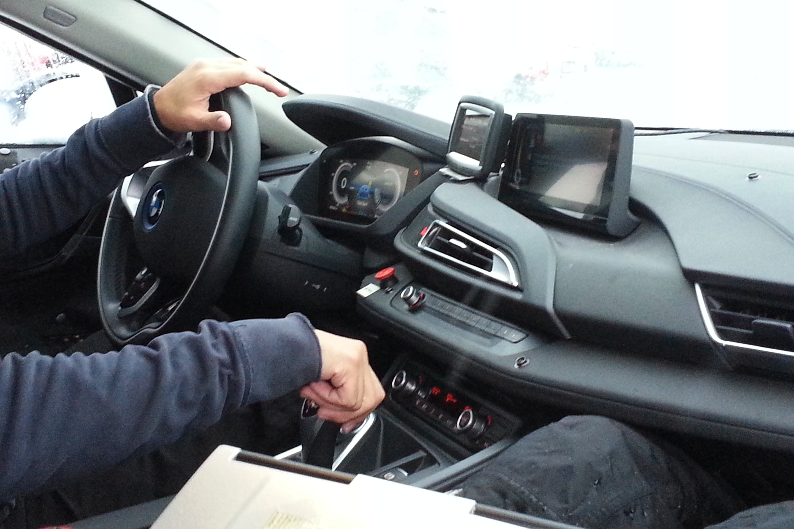 A BMW ennek ellenére úgy tűnik, hogy az utca népe előtt még nem kívánja minden részletével felfedni az új szupergépet, melynek piaci bevezetését jövő év elejére ígéri. Az álcázásnak persze egyéb oka is lehet: így fokozottan feltűnő az egyébként hátsó kerekeinél 231 lóerős, 320 Nm nyomatékú, 1,5 literes, háromhengeres, ikerturbós, közvetlen befecskendezéses és változó szelepvezérléses (hátra épített) benzinmotorral hajtott i8. Elöl logikusan villanymotor forgatja a kerekeket 131 lóerővel és 250 Nm nyomatékkal. A szupergép szuper fogyasztási értéke vegyes üzemben 2,5 l/100 km, amihez persze az is segíti, hogy 35 kilométert tisztán elektromosan is meg tud tenni. Jelenleg nyilván azt vizsgálják a derék BMW-s mérnökök, hogy vajon hóban, fagyban is képes-e arra a konnektorból is tölthető lítium-ion akkus i8.