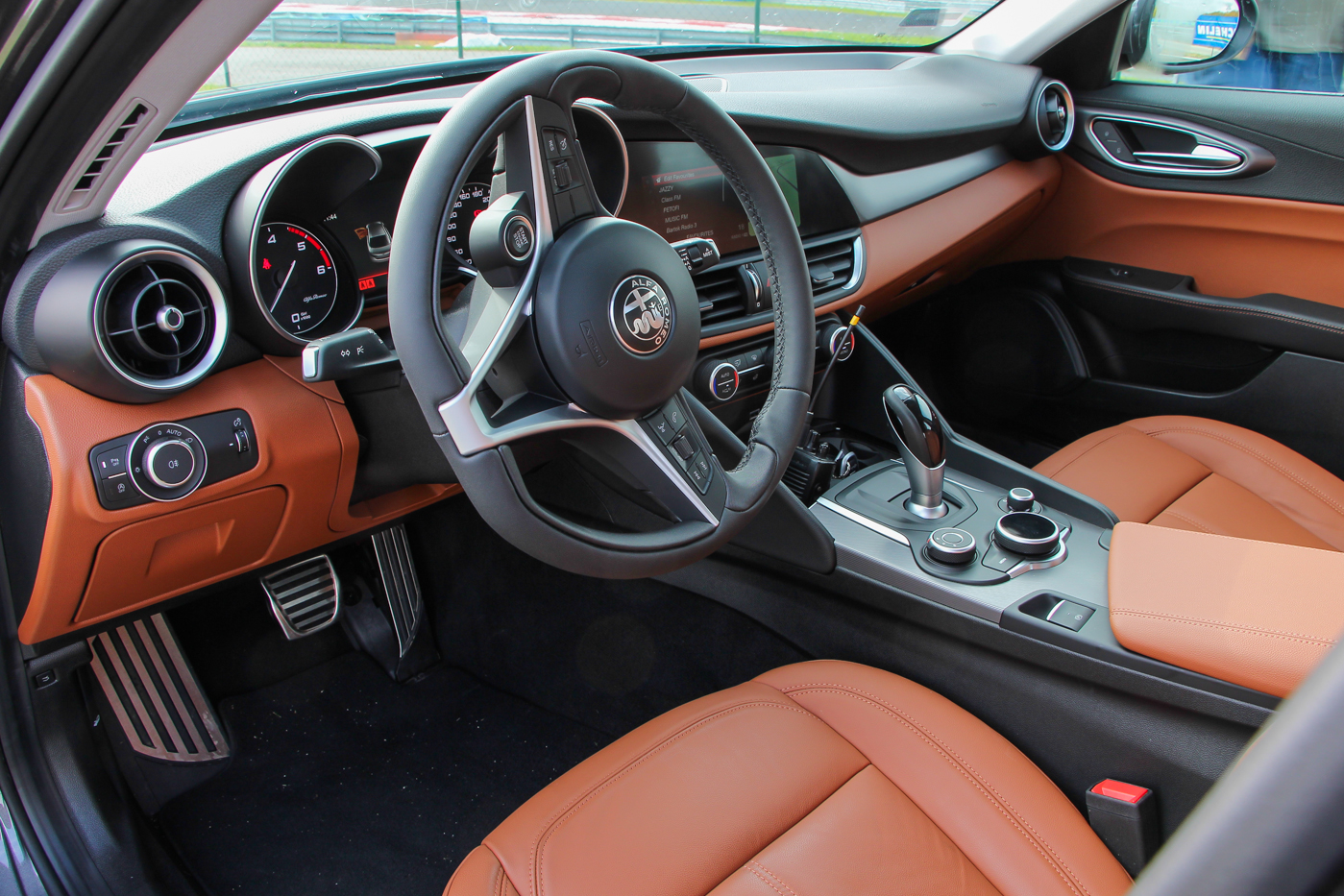 Külsőleg-belsőleg ordít róla az olasz kifinomultság. Barna bőrborítással kifejezetten bejövős a beltér, bár vezethetőségre nem szerettem meg a Giuliát. Talán egy hosszabb együttlét után közelebb kerülünk