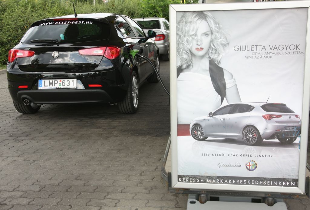 Fiat Kelet-Pest szalon előtt, a mosóban pedig azért volt gyakori vendég, mert a fekete fényezés nagyon dögös, de borzasztóan gyorsan koszolódik. Egyébként – de ez szubjektív meglátás – nem is áll jól az Alfa Romeo Giuliettának ez a szín, nem reprezentálásra készült, hanem arra, hogy izgalmasan domborodó, a megfelelő helyeken kiélezett formájával megdobogtassa szemlélői szívét. Alfa kell nekem – ez az üzenet, amit az autó közvetít, nemtől-kortól függetlenül hatásosan. Pirosban, bocsánat, rossoban sokkal nagyobb a hatása, de még a németek által elcsépelt metálezüst fényezéssel is jobban mutat, mint feketében. A színen azonban nem érdemes összeveszni, a Giulietta elég szép ahhoz részleteiben és egészében is, hogy senkit ne hagyjon hidegen a látvány.