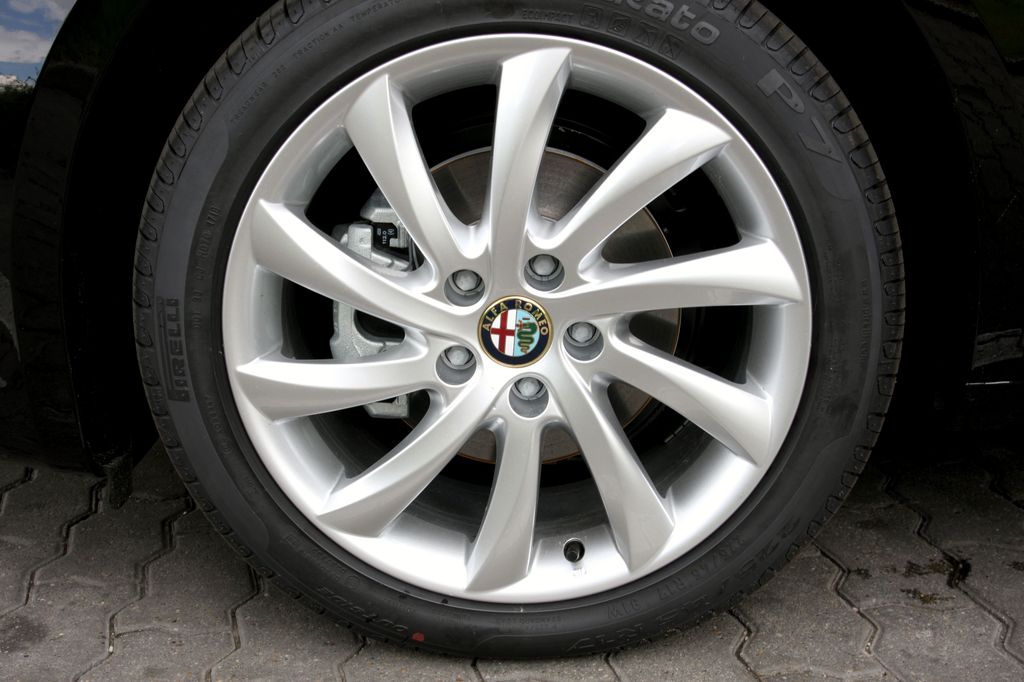 Szemből jól mutat az új kialakítású scudetto, azaz a legendás pajzs, míg a fényszórók látványát kicsit szokni kell. A kötelező nappali világítást biztosító íves LED fénysort a fényszóróházba integrálták – a Lancia Delta egyenes csíkja talán szerencsésebb lett volna. Oldalról izgalmas az övvonal kétszer is éles törésben megnyilvánuló jelenléte, ezek lendületet kölcsönöznek a formának, és szinte vonzzák a tekintetet, fel se tűnik, hogy praktikus, ötajtós a karosszéria. A hátsó lámpa és az egyedülállóan ívelt féklámpák teszik félreismerhetetlenné a kompakt Alfát. Ha jól belegondolunk, a Giulietta pontosan ugyanolyan, mint a 159-es: négy szép felnin kívül az égvilágon semmilyen utólagos tuningot, barkácsolást nem kér, és nem is tűr el. A négy szép felnit egyébként megtaláljuk rögtön a gyári extralistán is, az általunk kipróbált autóra szerelt 17 colos kerekek (225/45-ös Pirelli abroncsokkal) 150 000 forintért szerepelnek az extralistán, amely versenyképes ajánlat.
