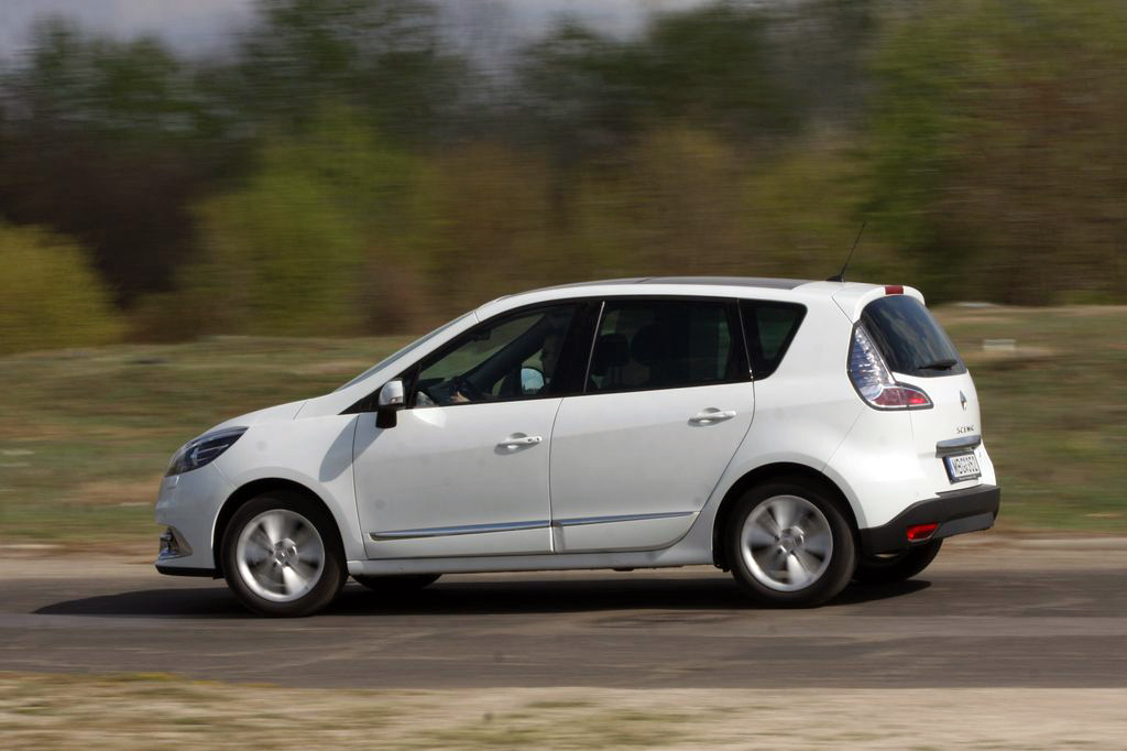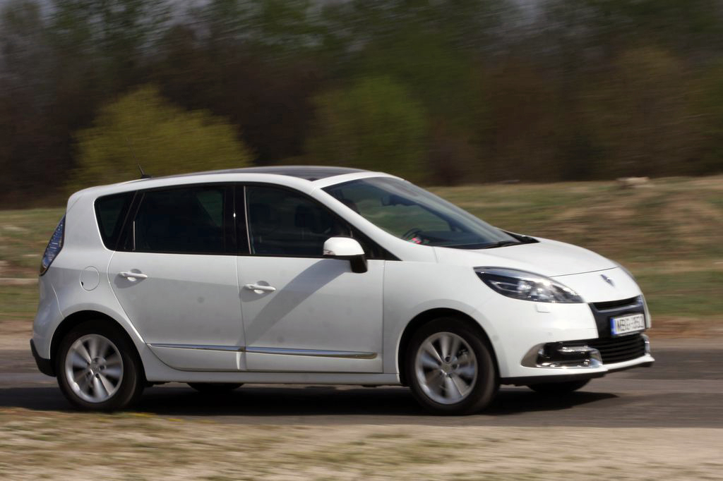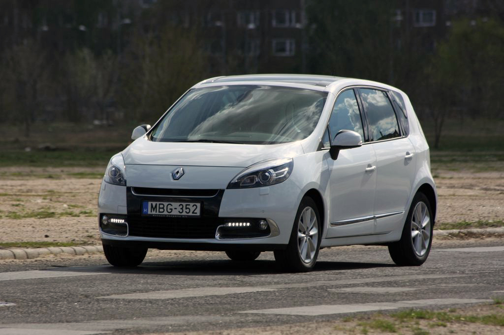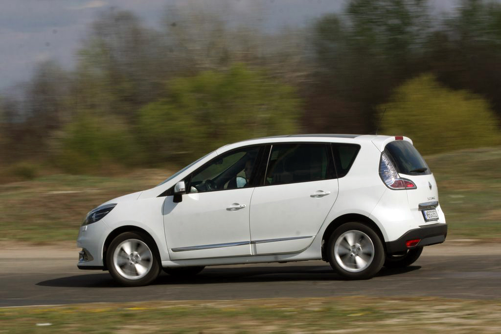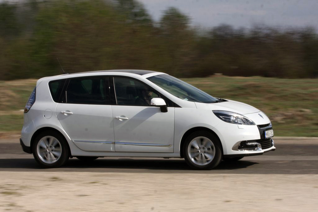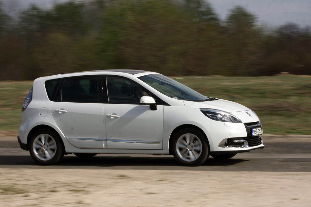 Kényelmes (elöl MacPherson, hátul csatolt lengőkaros) futóművével, változó rásegítésű szervokormányával, jó egyenesfutásával a Scénic továbbra is olyan, amilyen egy családi autónak lennie kell: komfortos. A célközönségnek vélhetően fel sem tűnik a csak hajszálnyit átlag feletti kanyarodási oldaldőlés, s a vevők inkább azt fogják nézni, hogy a konkurensekhez képest kedvező áron jól összerakott és jól kitalált autót kapnak. Bármelyik verziót is veszik, 6 légzsákot, visszagurulás-gátlós ESP-t, légkondicionálót, MP3-olvasós, Bluetooth-kihangosítós hifit – azaz kielégítő ellátmányt mindenképp kapnak – 5 290 000 forint a dízel alapára. A csúcs Privilége felára 850 ezer forint, egyebek mellett LED-es menetfény, sávelhagyásra figyelmeztetés, automata reflektoros, kanyarkövető xenonfény, automata (zsebből nyitó) Renault-kártya, tempomat, kétzónás automata légkondi, 17 colos alufelni, hátsó napfényroló, műbőr-szövet üléskárpit, Arkamys hifi és TomTom navigáció jár hozzá többletként. Az így 6 160 000 forintos vételár egyebek mellett 200 ezer forintos panorámatetővel, 170 ezer forintos Bose hifivel tornászható még feljebb, csak ész nélkül, minden extrát megrendelve lehet átlépni a 7 millió forintos vételárat – mellyel ellátmányához képest még mindig értékarányos marad a Scénic. Józanul 6,5 millió forintból nagyon kellemes családi autó konfigurálható össze, mely alapján nem meglepetés a kategóriavezető cím.