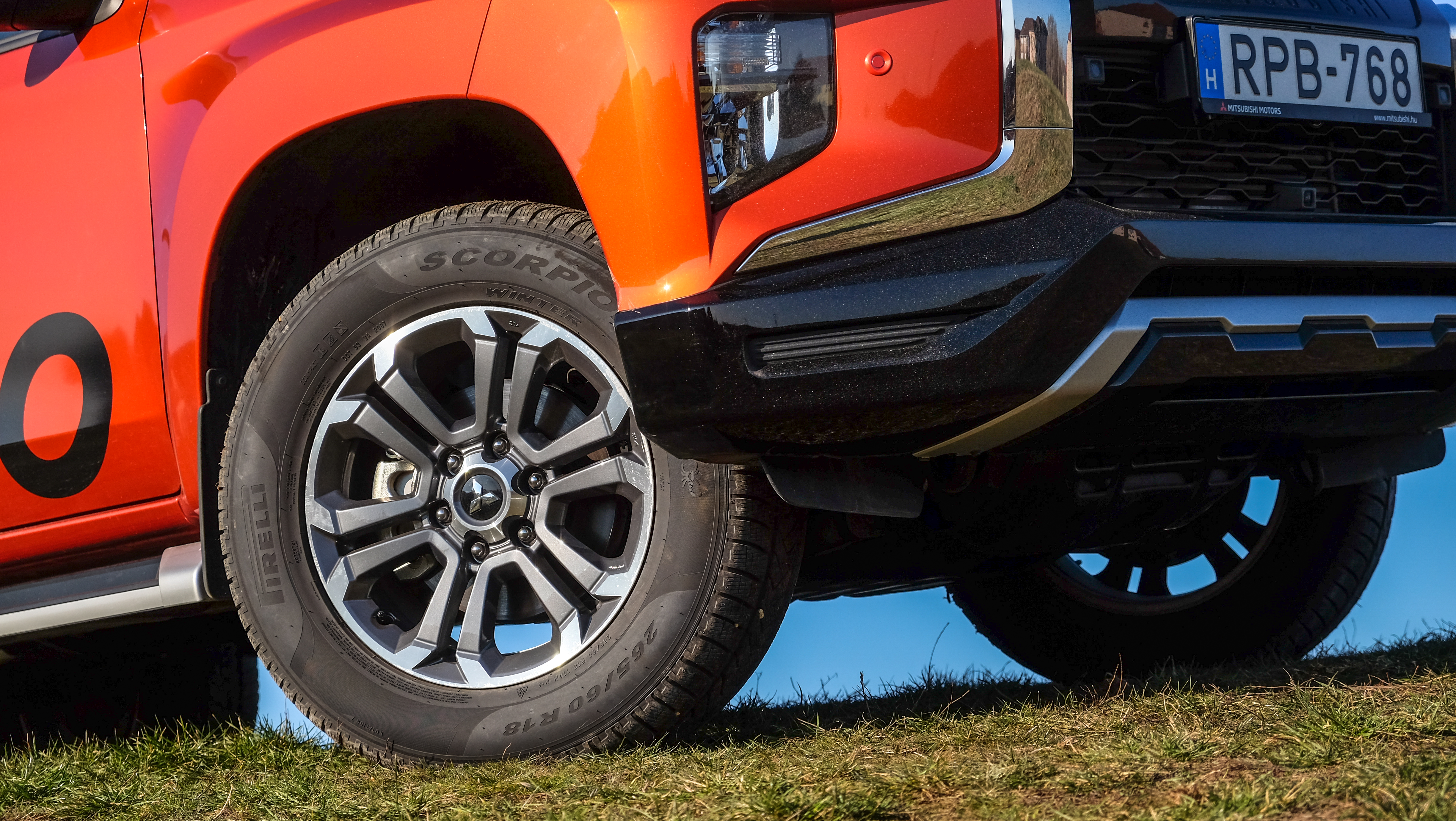 Javítottak a menetbiztonságán, nagy ütőkártyája, hogy fékrendszerét elöl egy helyett kétdugattyúsra fejlesztették, az egy-egy 60 milliméteres dugattyúk helyett két-két 45 milliméteres harap a tárcsákra. Jó is a fékreakció, téligumikat is kapott a tesztautó és a menetstabilizátorát is egészen érzékenyre hangolták, még ebben a nyálkás időben sem lehet vele nagy butaságot művelni, miközben a legtöbb pickup szárazon is bizonytalan szokott lenni. Fel kell készülni a kanyarodásra, nem ránthatjuk el a kormányt bármikor, nem adhatunk gázt csak úgy kanyarodáskor, de ezekhez a részletekhez hozzá kell szokni egy pickupnál, gondolkodni kell a technikán. Kormányzása könnyed, igazából semmi különleges nincs benne, rugózása viszont inkább a Hiluxéhoz hasonlít, mintsem egy Rangeréhez, magyarul úthibákon rendesen pattog. Az L200 legnagyobb előnye a hajtás, amin továbbra sem változtattak, vagyis a Super Select 4WD II rendszerrel szerelt változatokban középre is kerül osztómű, míg a piac többi szereplőjénél ilyen nem is rendelhető, emellett az L200 hátsó zárható differenciálművet is kaphat.