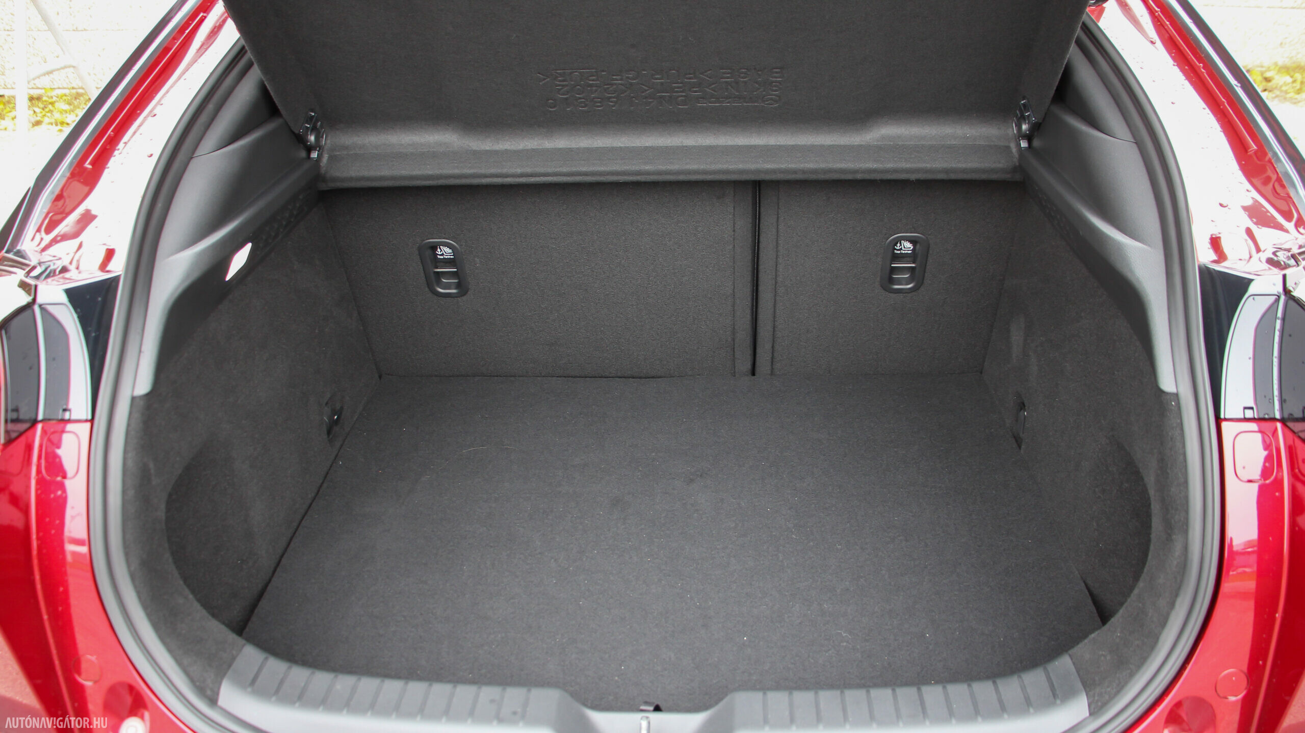 Hiába férne el elöl is, ott nincs csomagtér, hátul viszont egész korrektet kapunk, alapból is 466 literrel, támladöntéssel sík padlóval és 1171 literrel