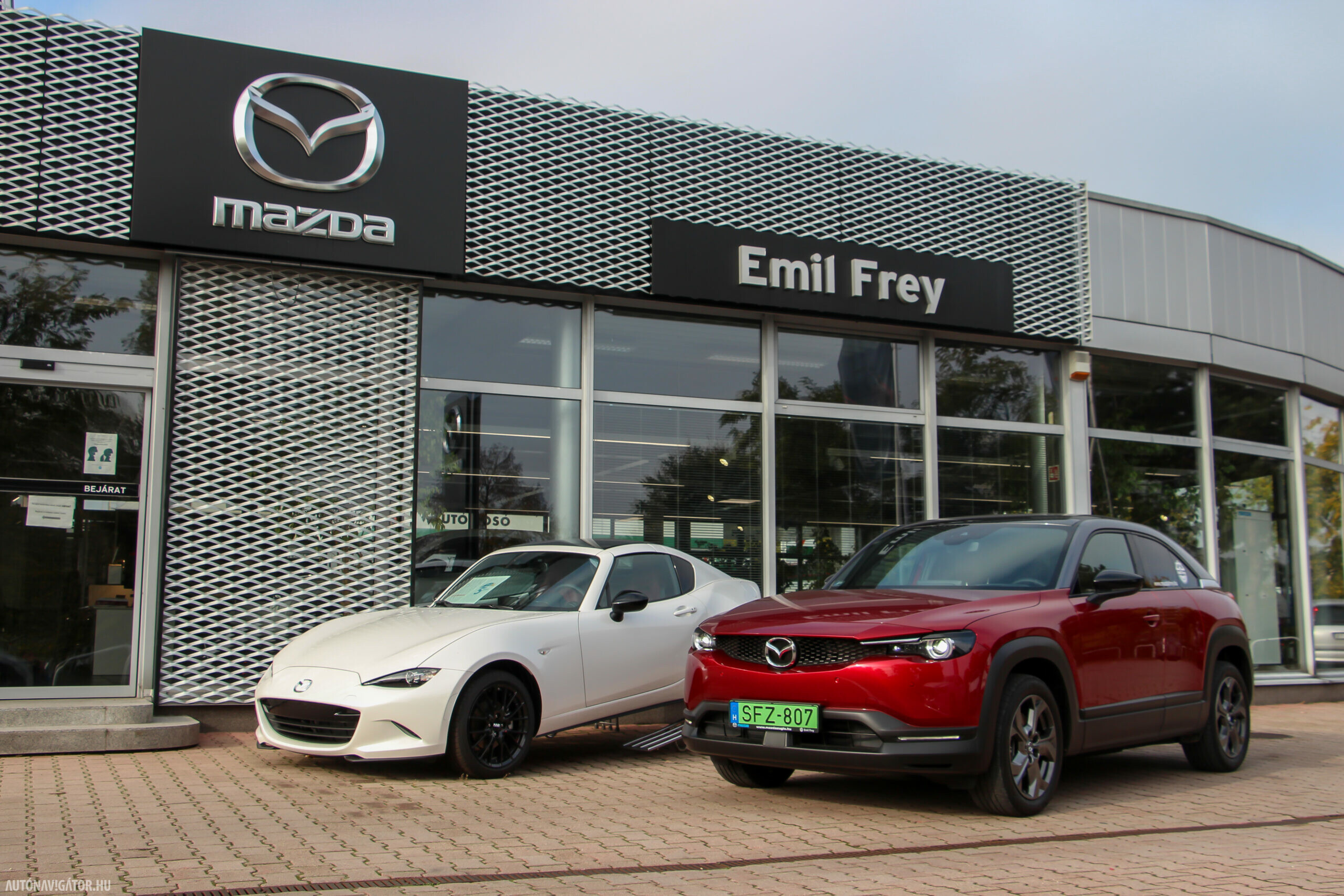 A 8 év/160 000 kilométer akkumulátor garancia természetesen alapáron jár, az általános teljes körűt pedig féláron, 73 900 forintért kaphatjuk meg hozzá. Ha kipróbálnád, a Mazda Emil Frey téged is vár, igaz, a normál tesztkör a ringes próbát nem tartalmazza, de aki szeret vezetni, akár egy MX-30-cal is bátran elmehet oda is, az akku bírni fogja, hazafele pedig CCS csatlakozós DC villámtöltővel 50 kW-tal pumpálható fel az akku (20-ról 80 százalékra 36 perc alatt), de a 6,6 kW-os AC töltővel egy teljes töltés is megoldható 5 óra alatt, míg az otthoni 10 A-s konnektoros töltővel 15 óra a teljes töltés. Utóbbi jól mutatja, ha nem merítjük le teljesen, egy szabvány konnektorról is reggelre tele lehet az akkumulátor, mindez persze okostelefonos alkalmazásból figyelhető, a klíma és még az ablakfűtések is távolról kapcsolhatók, az MX-30 pont úgy viselkedik, ahogyan egy villanyautónak kell. Ugyanakkor a naponta 150 kilométer fölött autózóknak még inkább belső égésű motort ajánl a Mazda. Persze ezt sem csak hasra-ütés alapján, szépen kiszámolták, hogy az ennél nagyobb hatótávra vágyóknak (és azt valóban kihasználóknak) jobb bolt és szerényebb emisszió a belső égésű motor. Mindenki másnak viszont itt van már az elektromos, 5-10, pláne 2-3 kilométerekre ilyennel érdemes járni, már amennyiben megengedhetjük magunknak az autózás luxusát, hiszen annak számít, de az MX-30 beltere is ehhez passzoló. Cikkünkhöz az MX-30-at a Mazda Emil Frey szalonjából kaptuk kölcsön. Köszönjük!