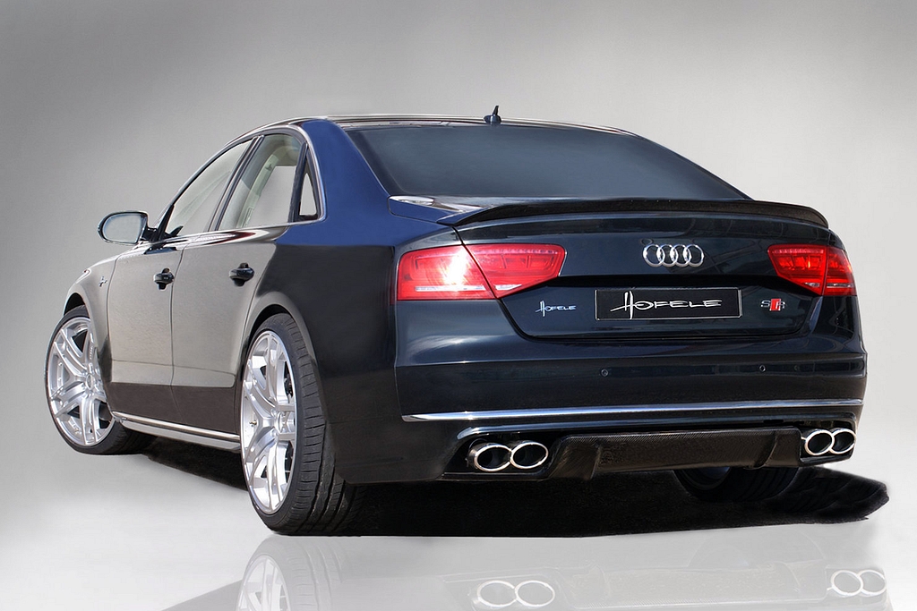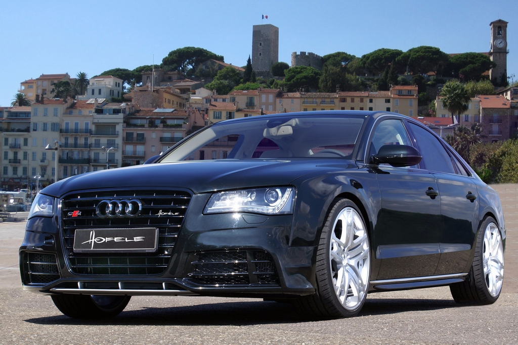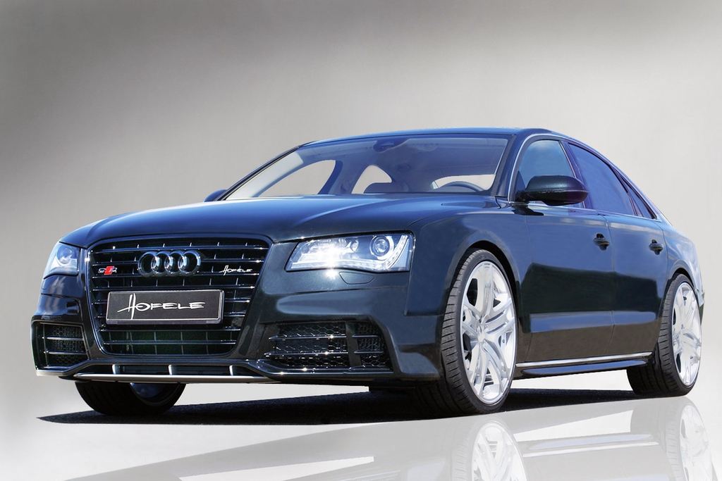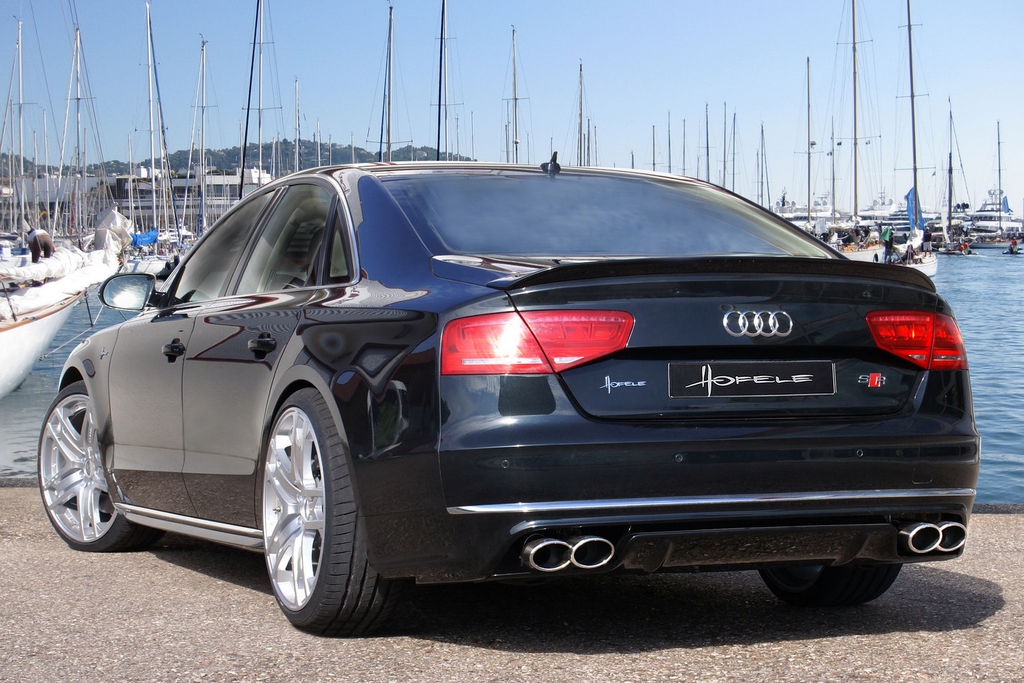 Sportosabb A8 azonban nem csak a gyárból rendelhető, sok tuningcég foglalkozik az alapmodellek "felhúzásával", például a német Hofele Design. Az Audi RS jelzéseire ügyesen hajazó SR 8 új lökhárítókkal, méhsejt mintázatú légbeömlőkkel, hátul diffúzoros megoldással, négy kipufogóvégződéssel gazdagodott, és csillogó krómozás helyett sötét tónusban pompázik a single frame hűtőmaszk. A tükörházak és a hátsó kiegészítők (diffúzor, légterelő) opcionálisan szénszálas műanyagból is készülhetnek. Az utastérben kétszínű, kontrasztos tűzéssel díszített bőrkárpit, helyenként pedig Alcantara betétek találhatók. Motorok tekintetében a gyári 4,2 literes, V8-as benzines egység 372, a V8-as TDI dízel pedig 350 lóerőt tud, és ezeknél a Hofele specialistái egységesen 390 lóerőre emelik a teljesítmény maximumát. A futómű különlegessége a 70 km/órától aktív automatikusan süllyesztés, míg a könnyűfém felnik vonatkozásában 20, 21 és 22 colos méret közül választhat a tulajdonos.