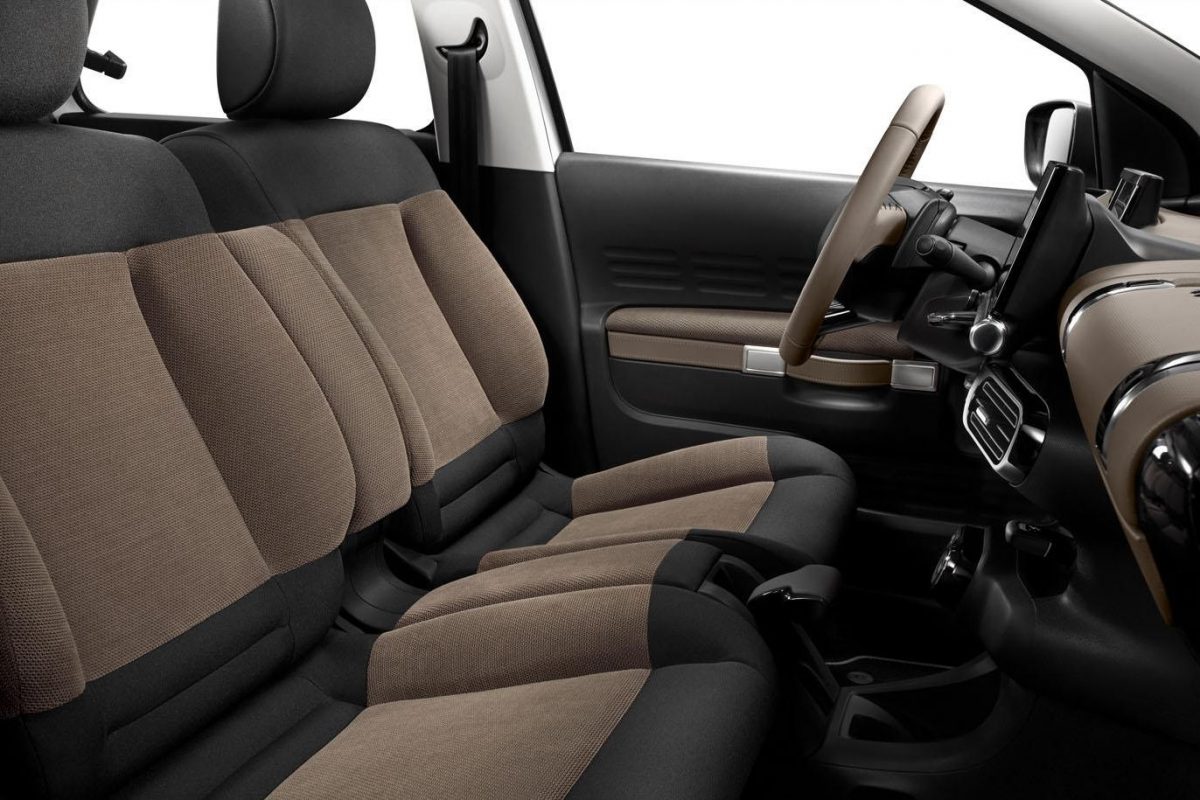 Az első ülések összenőttek, B-oszlop van (a koncepcióban nem volt). A hátsó ablak csak billenthető - hasonló tömeg- és költségcsökkentő megoldás például, hogy a hátsó támla nem osztott, és az is, hogy a hővédős, UV-szűrős panorámatetőhöz nincs árnyékoló, a Citroën szerint nem is kell, olyan jó az üveg... Hogy helyet nyerjenek, alul mélyített a műszerfal, a kesztyűtartó fent van, az utasoldali légzsák meg még feljebb, a tetőben