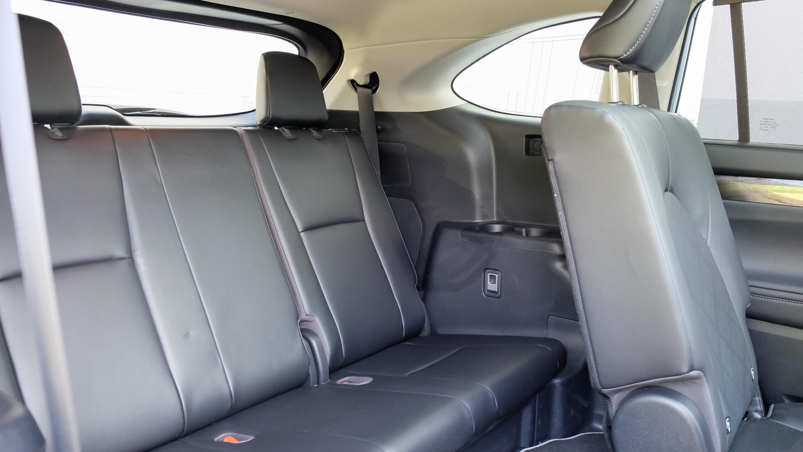 Márpedig a Highlander nem akármilyen, hanem igencsak tágas és komfortos hétüléses. Főként a helykínálatával fényűző, de azzal tényleg. Elöl az ajtók belső oldala között 1,6 méteres szélesség mérhető. Vaskos az első könyöklő, méretesek és komfortosok az ülések. A második sorban a szélső helyeken az elsőkhöz hasonló kényelmet kapunk, külön klímaszabályzóval, hiszen háromzónás a rendszer. Hátul is hosszú úton tologatható, szabályozható támladőlésű az ülés, utóbbi opció a harmadik, átlagos termettel felnőttek számára is teljesen elegendő méretű üléssorban is megvan. Még a helykínálat is egészen jó ott, korlátozott azonban a középső sor középső ülőhelye, hiszen annak háttámlája lényegében a lehajtható, természetesen dupla pohártartós könyöklő. Kihagyott ziccer viszont, hogy nincs síalagút, csak 2/1 arányú osztással dönthetőség. Márpedig hiába 1,2 méter hosszú az 5 ülés mögötti csomagtér, sílécekhez azért rövid.