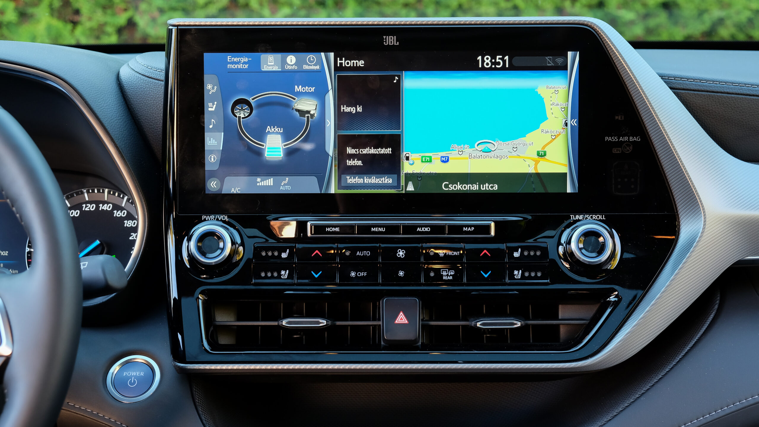 Gyári navigációt csak a csúcsverzióhoz kapunk, de nélküle is gond nélkül meg lehet lenni, a 11 hangszórós JBL hifi hangja több mint kellemes