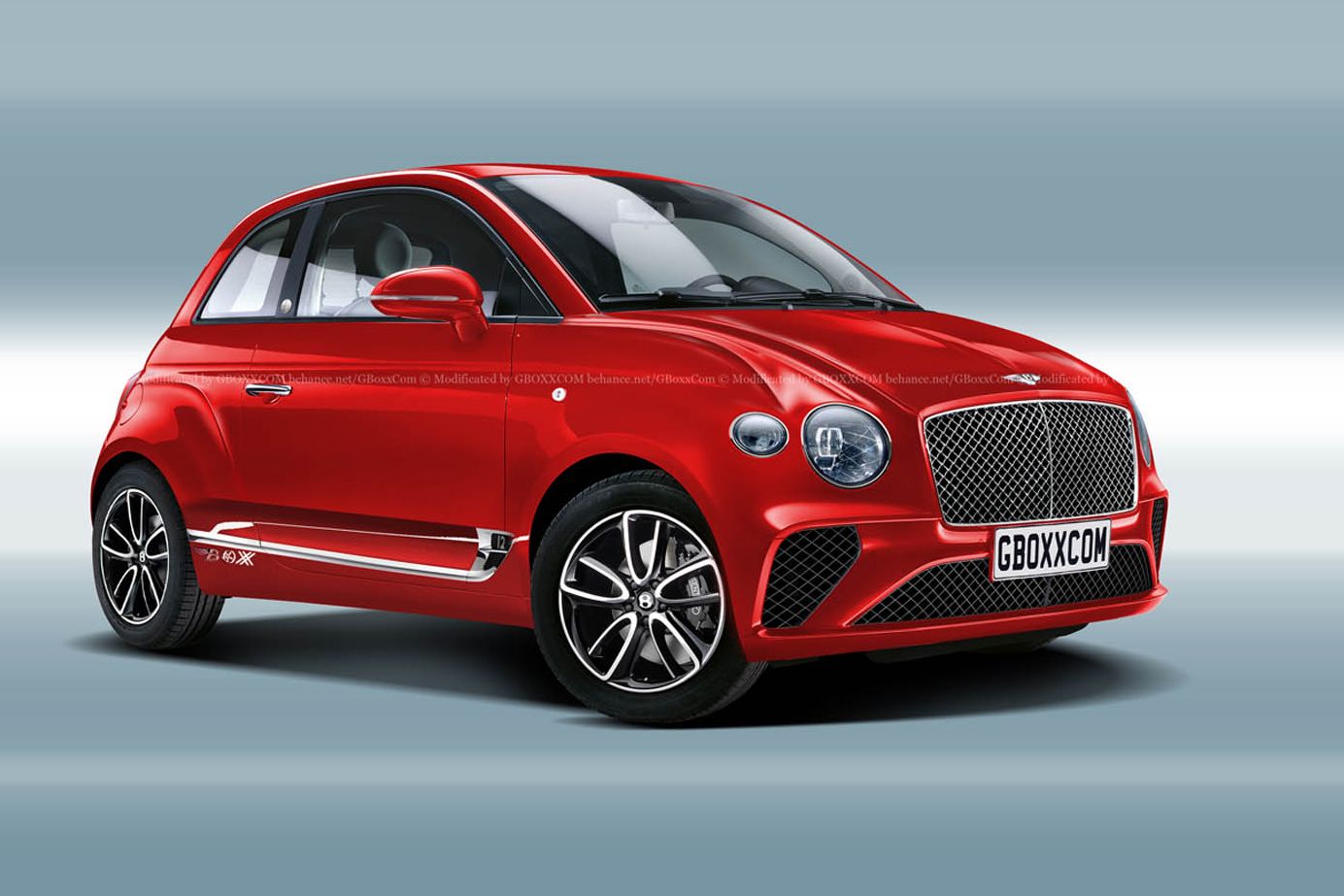 A Fiat 500-ra rajzolt Bentley Continental GT is eléggé furcsa arányokkal rendelkezik, ám valahogy mégis jobban illik a kisautóhoz a kerek fényszóró. Bár ebben szerepet játszhat az is, hogy a Fiat 500 sziluettjéhez tudat alatt már automatikusan kerek formákat társítunk. Ugyanakkor hátul végképp zavaróak az arányok. A Porsche „csíklámpája” veri a Bentley tojásdad formáit.