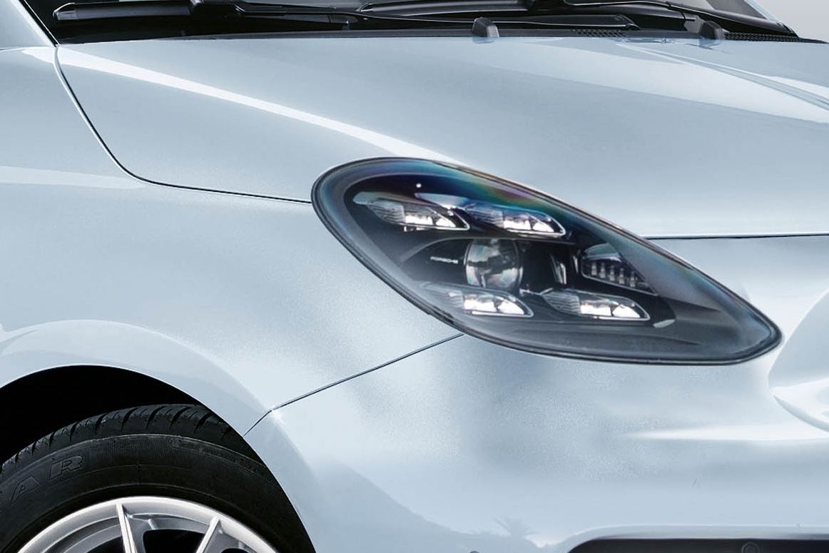 A legfurcsább talán a Porsche Panamera arca a Fiat 500-on, illetve annak Abarth változatán. Lehet, hogy pont azért, mert a Porsche pajzs az Abarth emblémára hasonlít? Hátul viszont a kisautón is jól áll a karosszéria teljes szélességén végigfutó lámpa.