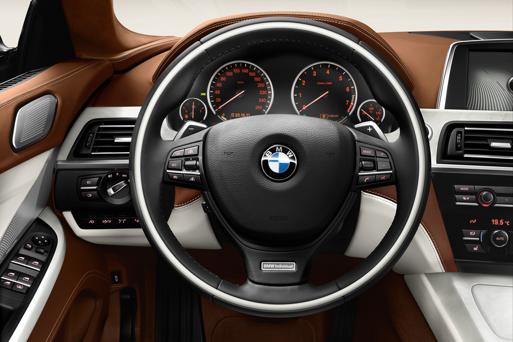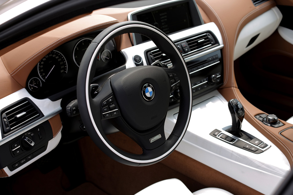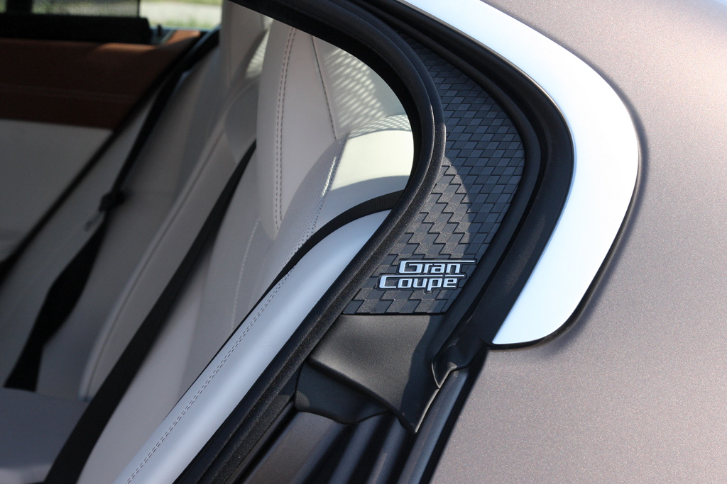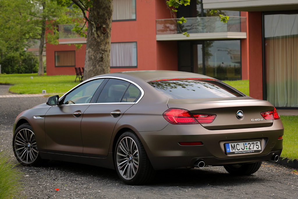 Kárpótlásként keret nélküli ablak, pazar, egyszersmind elvárt anyagminőség, árnyékoló, ülésfűtés javítja a kedélyt. Elöl szellőztethetőek is a szuperkomfortos ülések, és azt még most rögzítsük, hogy az említett tételek zöme feláras, méghozzá igen drága extra, ahogy az már csak lenni szokott ebben a kategóriában. A 6-os Coupéra 11 centit verve 2968 mm-es tengelytávú Gran Coupé 5007 mm hosszú, szélessége 1894, magassága 1392 mm, csomagtartója 460, bővítve 1265 literes. Formájára kár karaktert fecsérelni, vélhetően durva kisebbségben lesznek azok, akiknek nem tetszik. A széria Xenonon túlmutató adaptív (és a márkára jellemzően gyűrűs) LED-es fényszórók szemre mindent visznek, hátul is akadnak LED-ek, a két kipufogóvég és a szélvédő teljes szélességében nyújtózkodó féklámpa is sejteti az autó különlegességét.