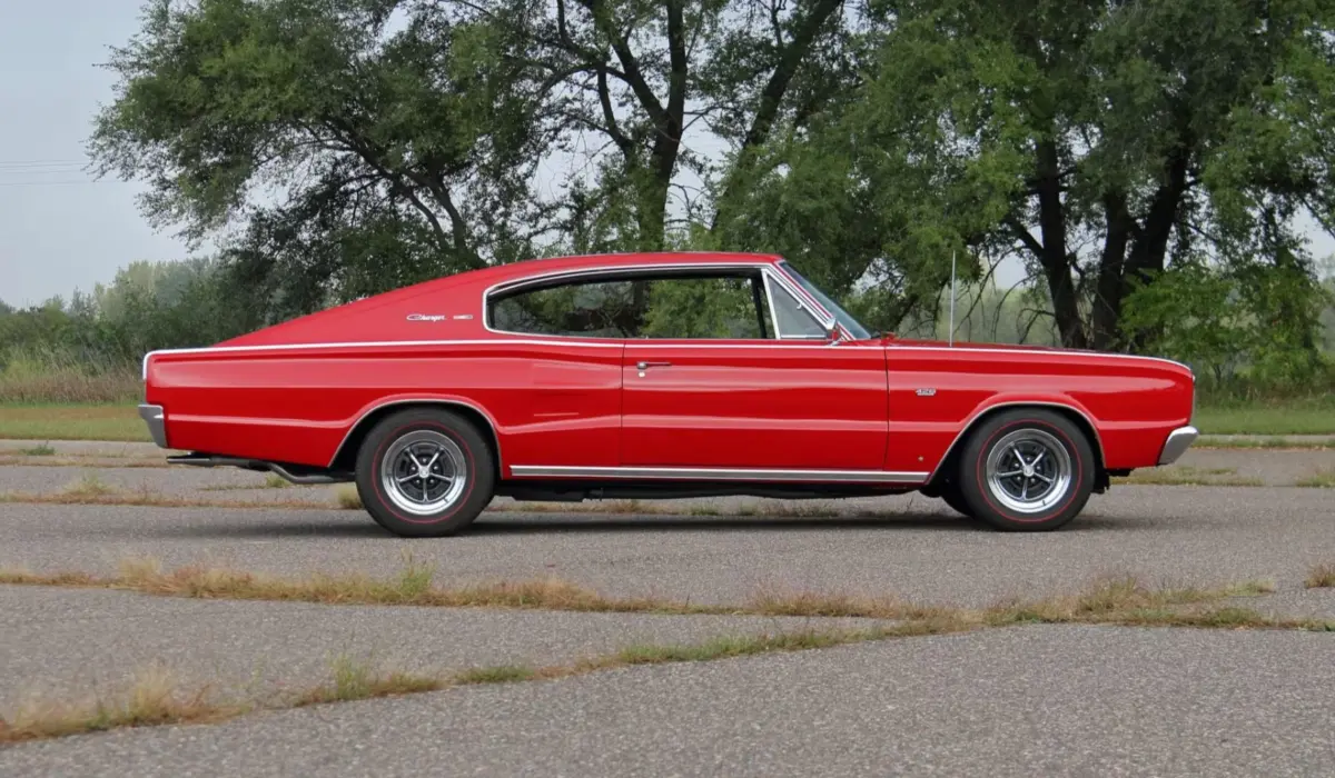 Az első Charger külsőre inkább egy elegáns fastback volt: rejtett fényszórók, hosszú tetőív, négy külön ülés, ami azért érdekes, mert akkoriban sokszor elöl is egyetlen hatalmas üléspad húzódott végig. Már az alapmotor is V8-as volt, de a kérhették a 7,0 literes Hemit is az ügyfelek, 425 lóerős teljesítménnyel.