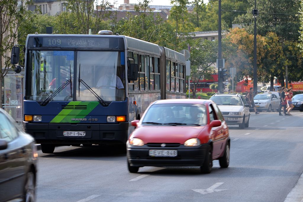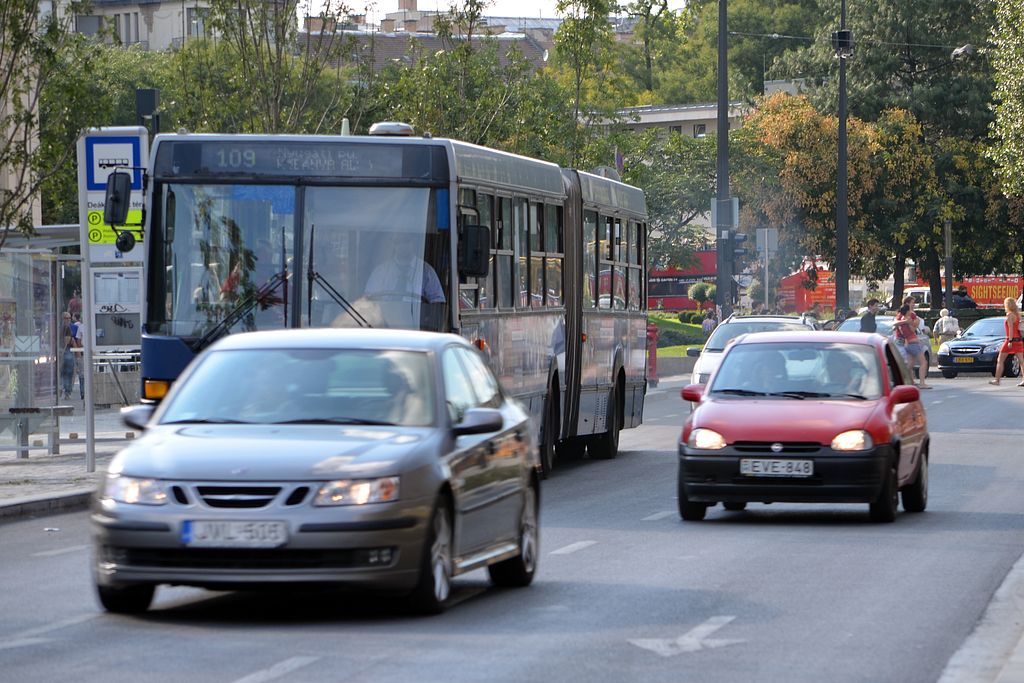 Nem férnek el a külső sávban haladók a megállóban tartózkodó busz mellett, így folyamatos a járművek kerülgetése. Akinek nem sietős, általában megvárja az utascserét a busz mögött - ahogy a képen látható fehér VW Passat is -, aki viszont haladna, abban hamar felmegy a pumpa, és beindul a közéleti folklór: dudálás, ökölrázás, anyázás - jó magyar szokás szerint