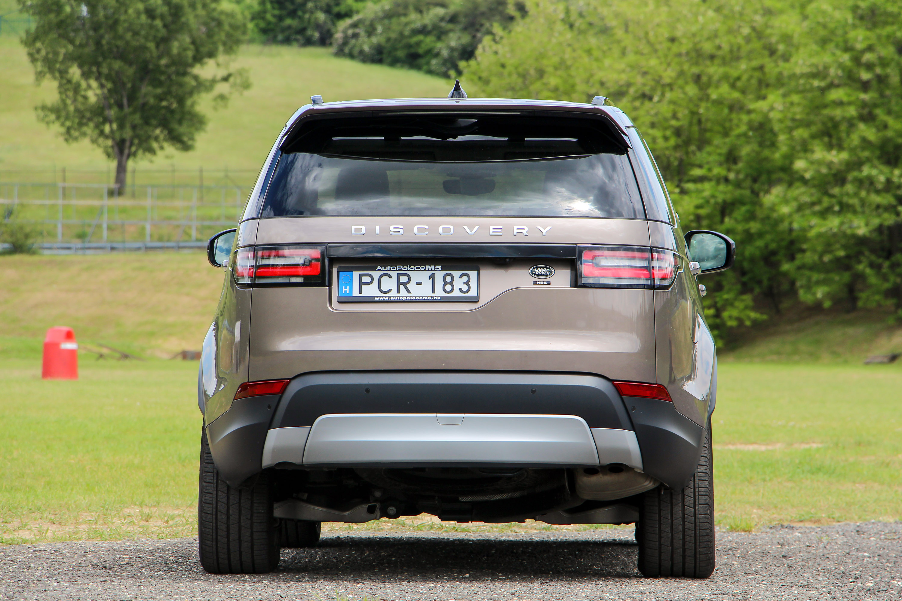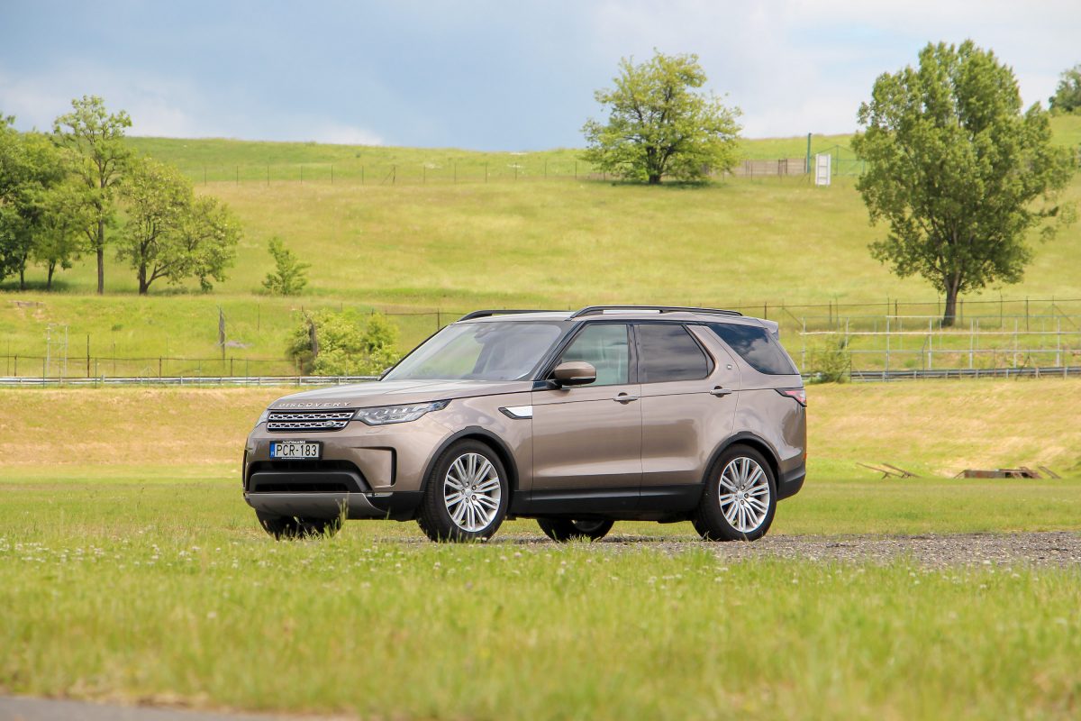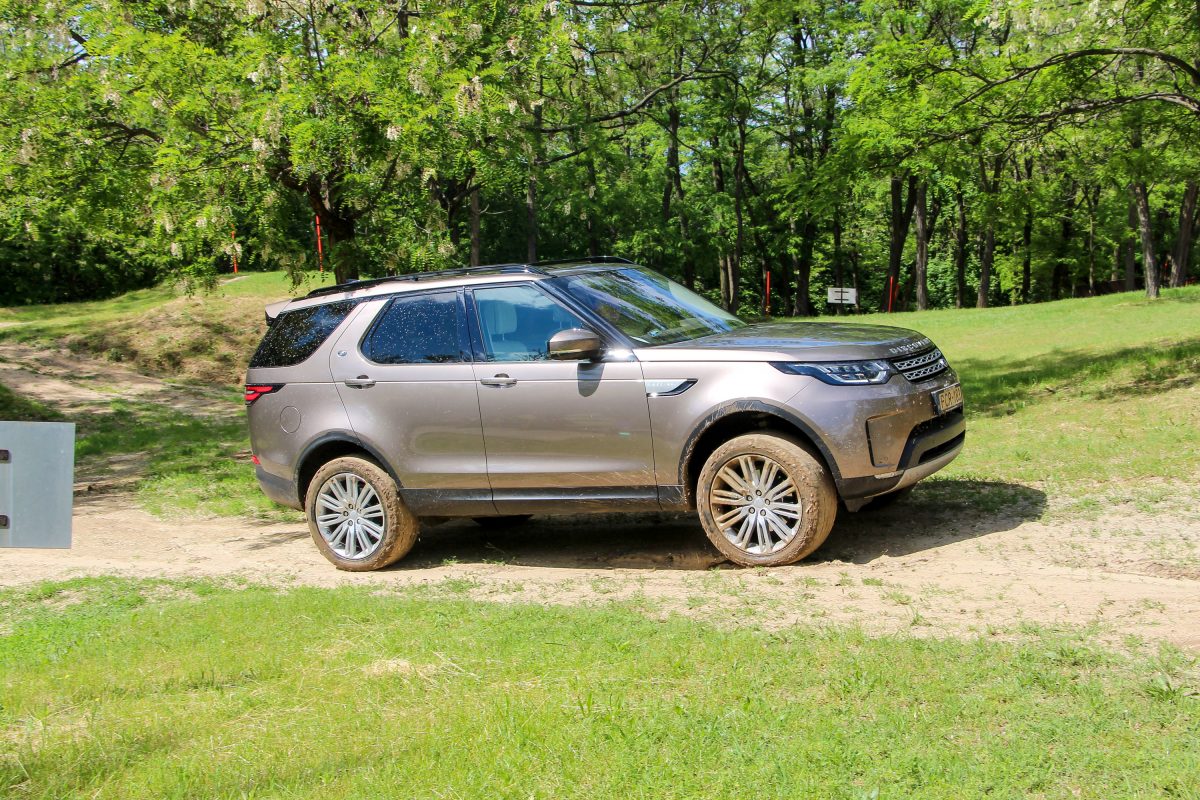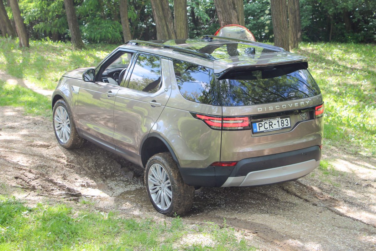 Fotón nem is látszik, hogy mekkora monstrum a Discovery, élőben azonban letaglózó. Prémium SUV és kemény terepjáró egyben, amihez a légrugós változat esetén akár 28,3 centis hasmagasság társul