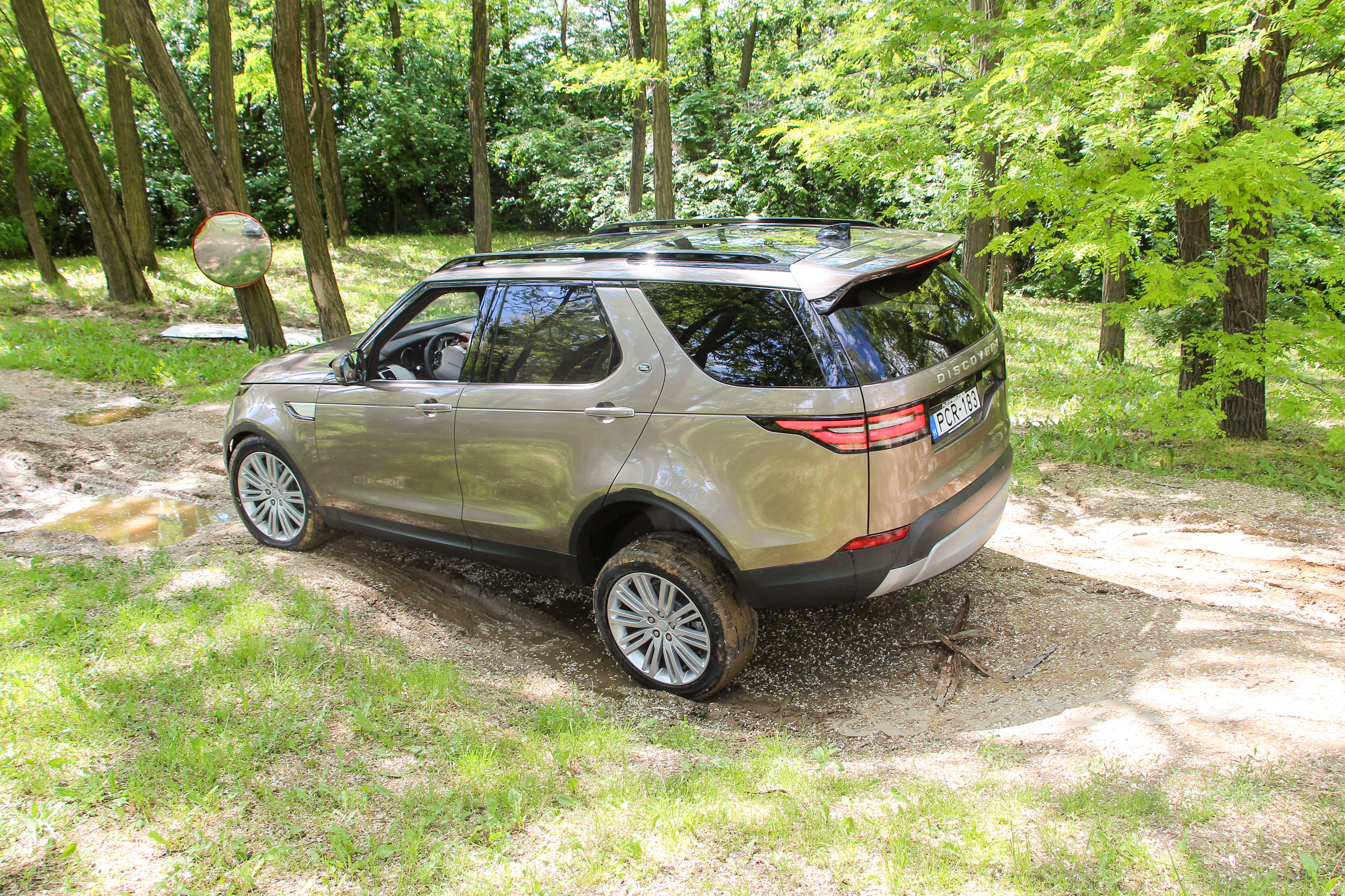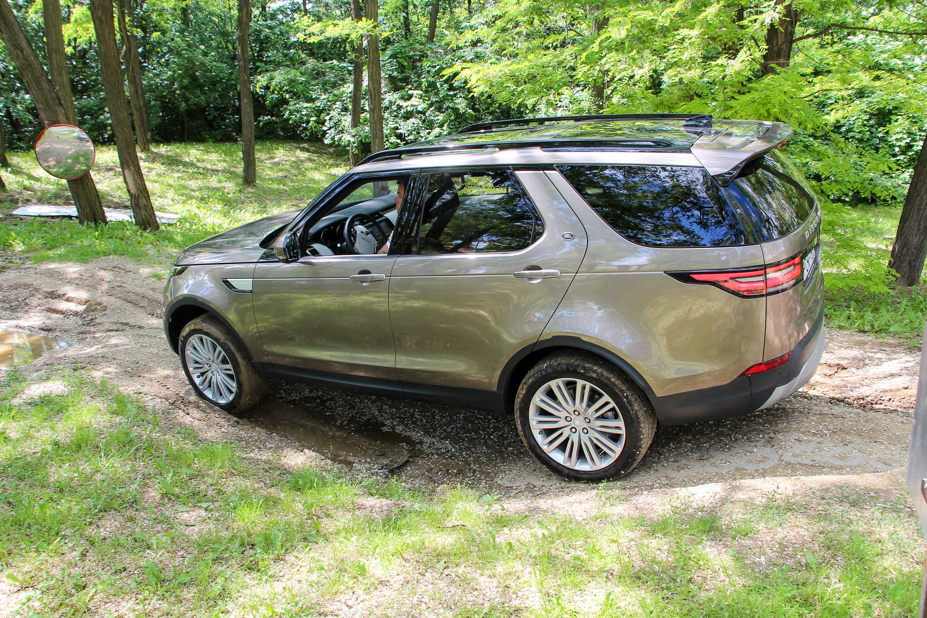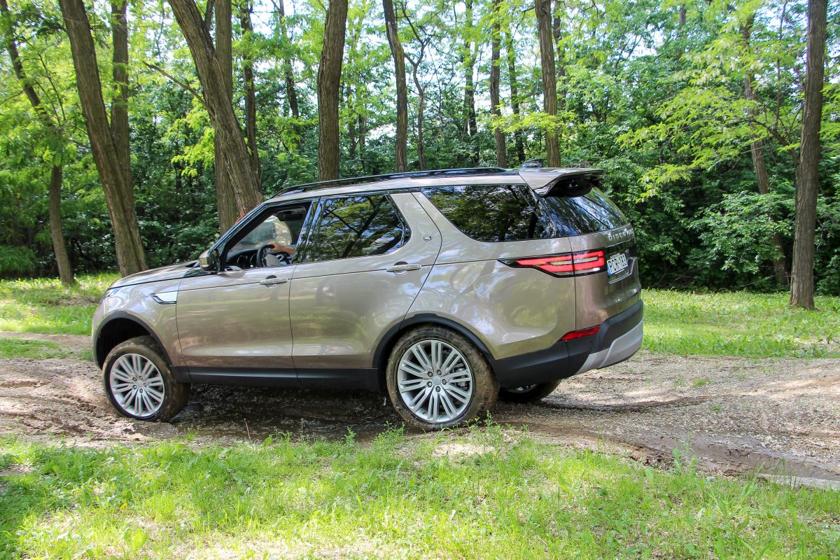Fotón nem is látszik, hogy mekkora monstrum a Discovery, élőben azonban letaglózó. Prémium SUV és kemény terepjáró egyben, amihez a légrugós változat esetén akár 28,3 centis hasmagasság társul