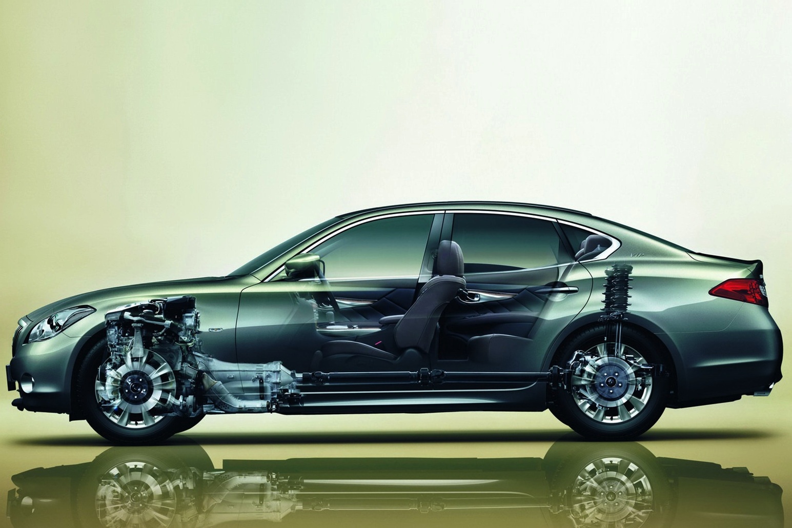 [BANNER type="1"] Kétféle motorral szállítják az angol Proud (büszke) és a Diamond (gyémánt) szavak összevonásával elnevezett Proudiát: a 2,5 literes 225 lovas V6-ossal hajtott verzió csak hátsókerék-hajtással érhető el, míg az erősebb, 333 lóerős 3,7 literes V6-oshoz kívánságra akár négykerék-hajtást is csatolnak. A Proudia többféle kivitelben is kapható, míg az igazi zászlóshajónak tekinthető Dignityt csak egyetlen, de minden szükségest és szükségtelent tartalmazó felszereltségi csomaggal árusítják. Az Infiniti M35h-ból származó 3,5 literes V6-os benzinest és villanymotort kombináló hibridhajtás összteljesítménye 364 lóerő.