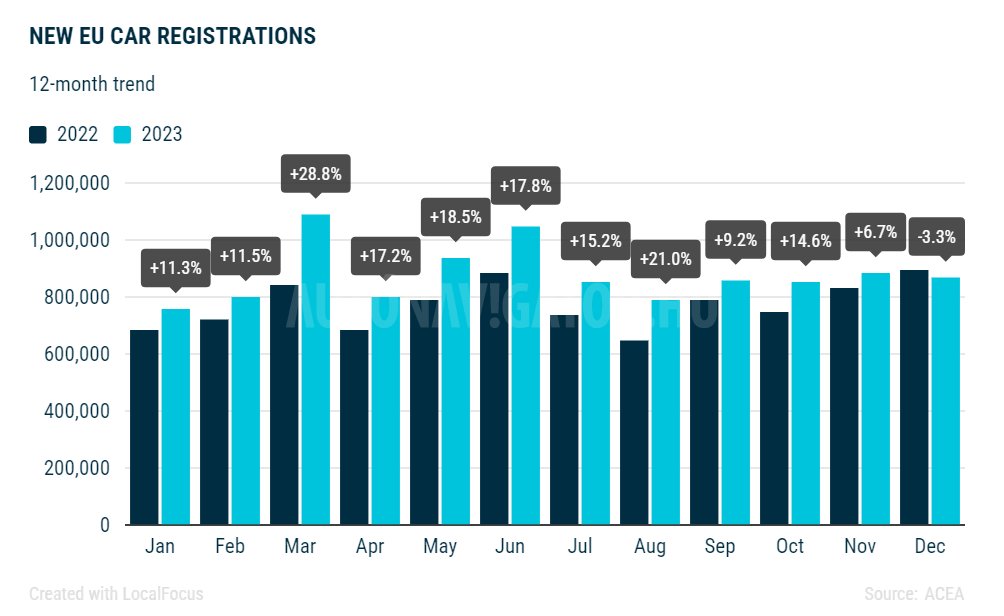 Azt nem árt figyelembe venni hogy ezek az adatok egy meglehetősen rémes 2022-est követnek, ami azért relatívizálja a növekedést, és benne van az is hogy sokan lassan 3-4 éve halogatják a cserét, ez most mind ráömlött a piacra keresleti oldalon, miközben a gyártók még mindig próbáltak feltápászkodni a chiphiány és az ukrajnai háború okozta sokkból (utóbbi főleg a német gyártókat érintette).