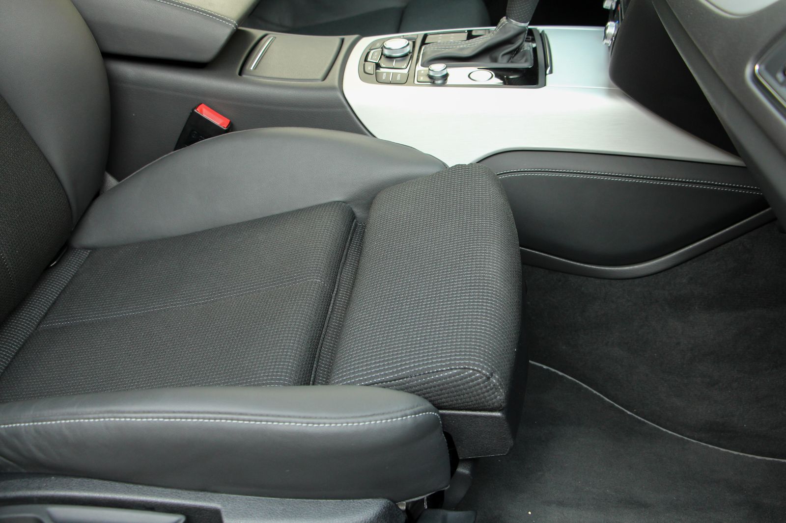 Alapjában véve egyet értek Kallerrel. Ez egy faramuci konfiguráció. Egy Audi a Belsejével szokott hódítani. Ez meg kapott egy „félbőr” belsőt minden dekor nélkül (és ugyebár ez az huzat bőrt nem tartalmaz, épp azért került középre szövet, mert a műbőrön nem kényelmes ülni).