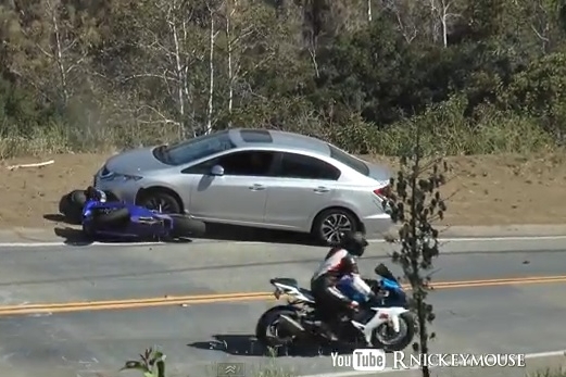 Utólag "remek dolog" baleseteket elemezni, de legalább ennyire remek dolog azért forszírozni egy kanyart, hogy az a videón jól mutasson. Az alábbi videó főhőse pedig így tett, addig húzta a gázt, mígnem motorja csúszni kezdett, majd el is esett. Tehetetlensége miatt természetesen haladt tovább, immár csúszva a kanyar külső íve felé. Egy Lexus RX sikeresen kikerülte a padka irányába, egy Honda Civic pedig a motoros láttán teljesen le is hajtott az útról, s épp meg is állt, amikor a motor és a motoros orra alá csúszott.