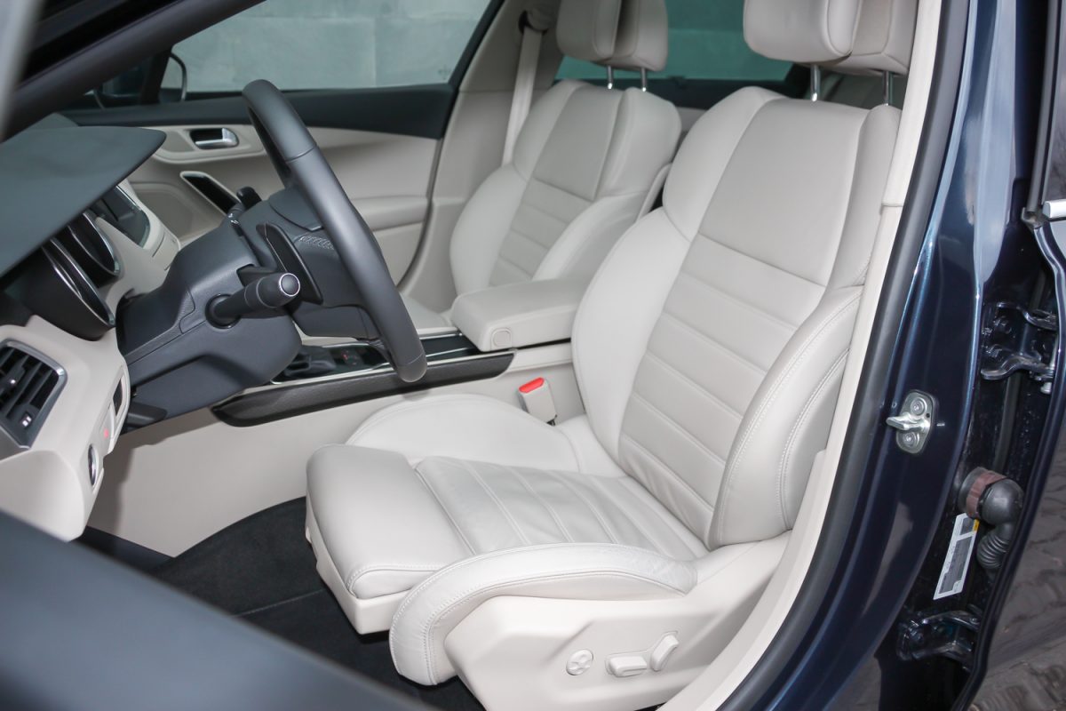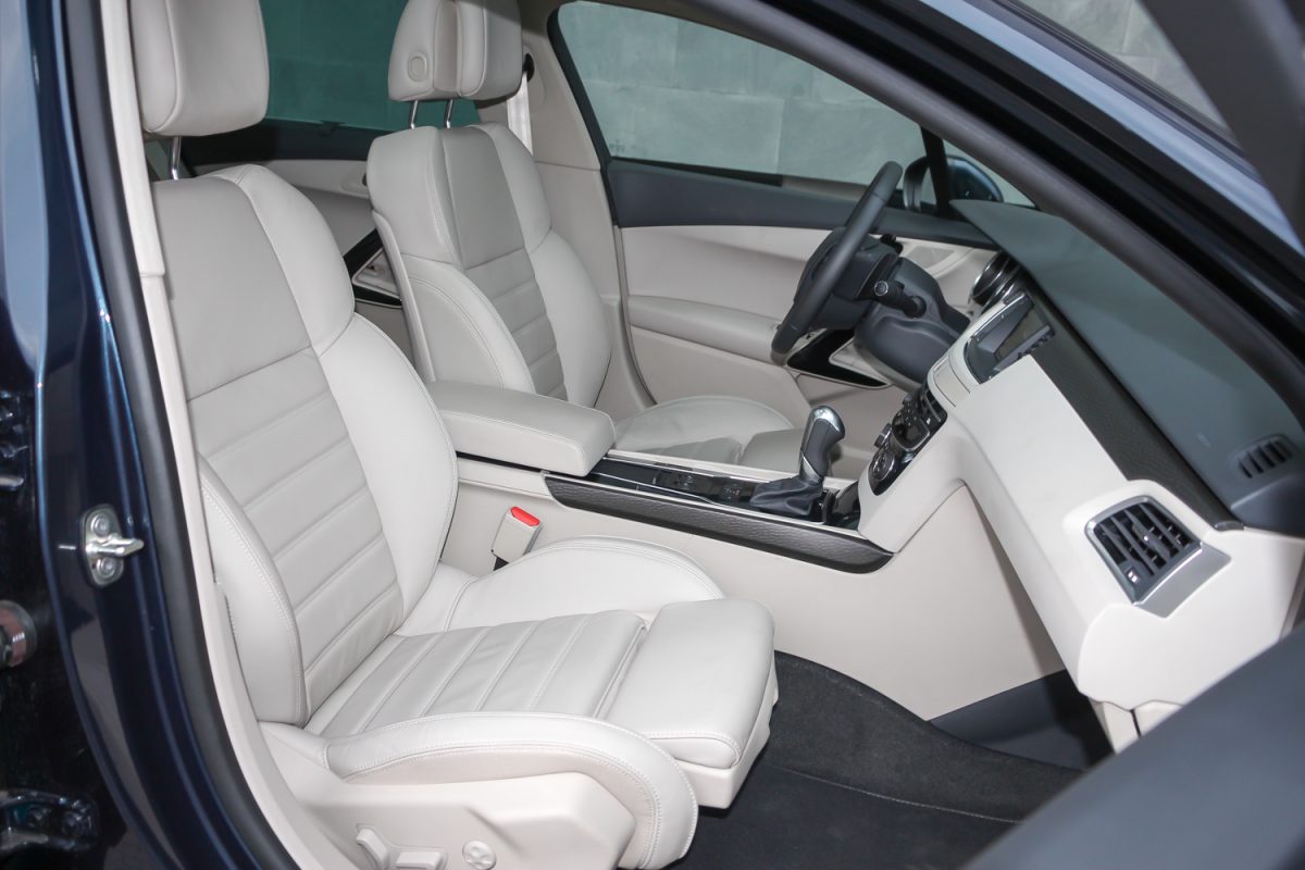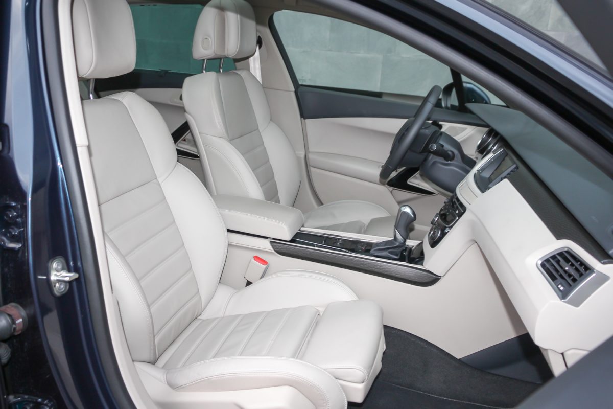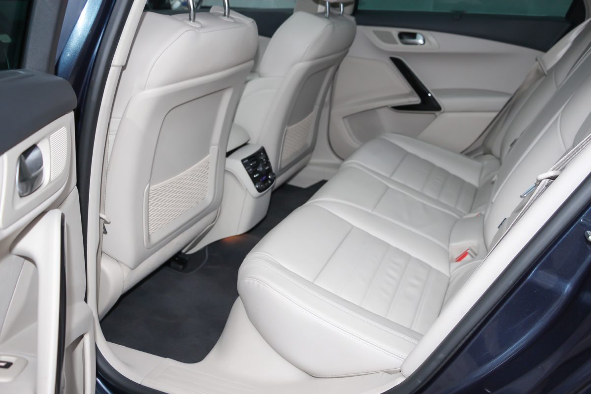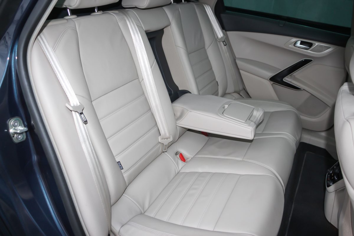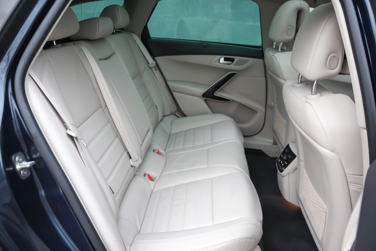 Kellőképpen kipárnázva. Finom a bőrkárpit, bár érződik rajta, hogy ha állati származék is, akkor is az a darált, formázott és úgy színezett fajta. Mindemellett, ha már nem „igazi”, akkor remélhetőleg ellenállóbb és tartósabb. A tetőkárpit szövetje is finom, ahogy az utastéri fényár is jó még ma is. A kékesfehér mennyezeti világítás bár már nem akkora durranás, mint a 2011-es bemutatókor, de ma is hasznos, ahogy az is, hogy a hátul ülő, szenderegő utasok fölött ki lehet kapcsolni – ne ébredjenek fel ajtónyitáskor, hadd szundizzanak tovább. A két első ülés és a kormány tág tartományban állítható és még az üvegtetővel sem túl alacsony a belmagasság.