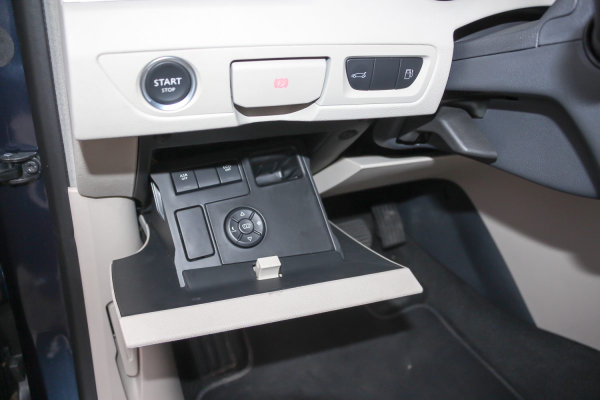 A lenyíló rekeszből állítható a head up display, ahogy eddig. A középkonzol átalakult, az érintőképernyő jobb, mint az eddigi joystick. A hátsó utasok kedvükre fűthetnek