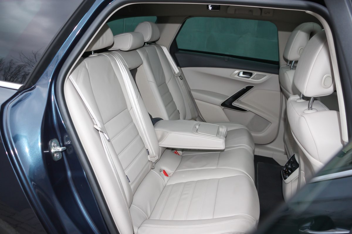 Hely van bőven, de lehajtott kartámasszal, négy főnek az igazi. Az ülés nem masszázsfunkciós, csak simán kényelmes