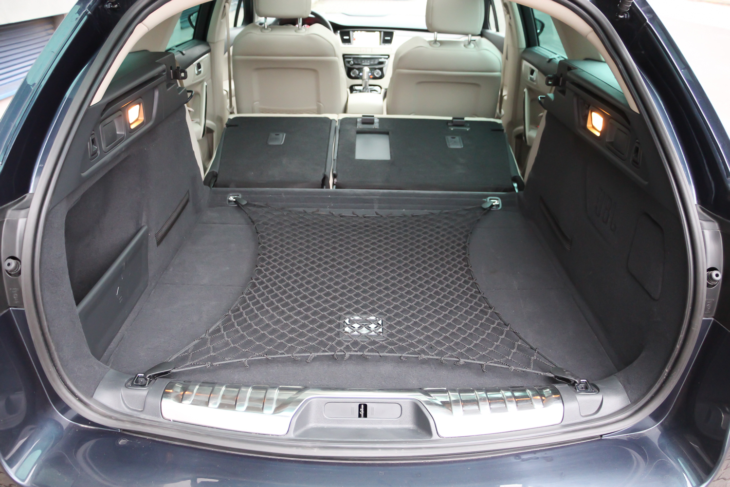 A hatalmastól az óriásiig bővíthető, van térelválasztó és háló is. 518 literes, mivel a tesztautóhoz volt mankókerék, defektjavítószettel 560 lenne