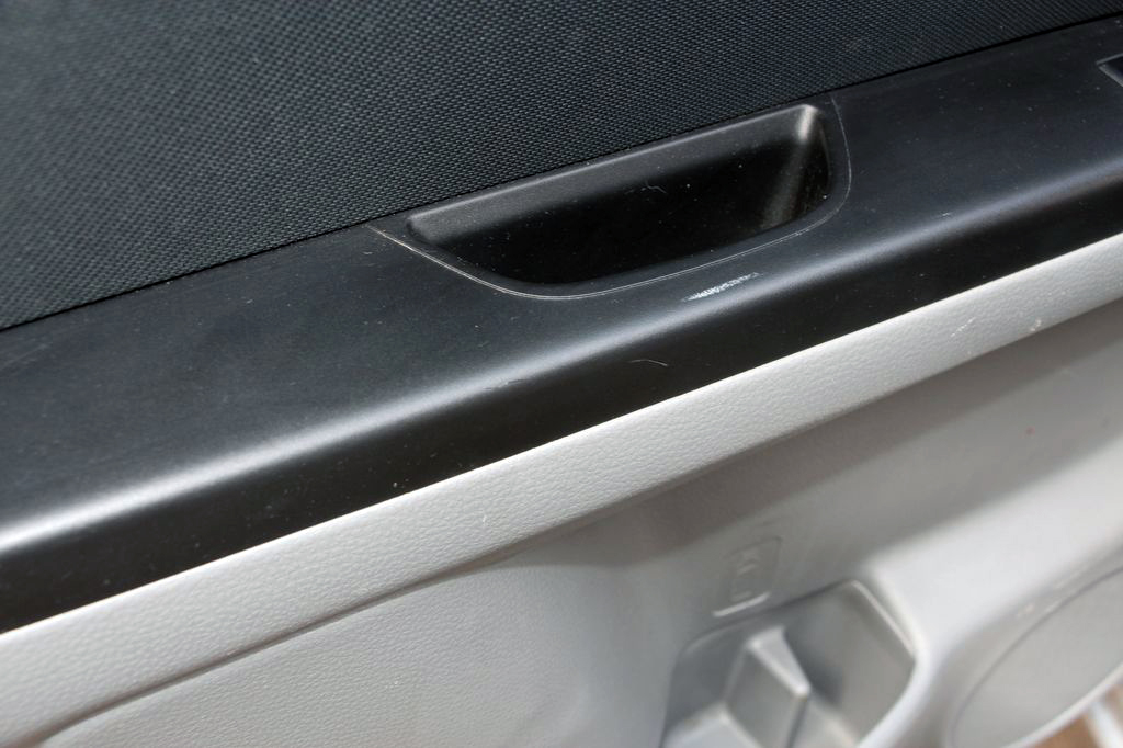 Jót tesz az utastér hangulatának a kéttónusú műanyagkárpit, az ajtókra jókora textilbetét is jutott, mindegyik ajtón van továbbá palacktartós zseb, az egyiken némi karc is