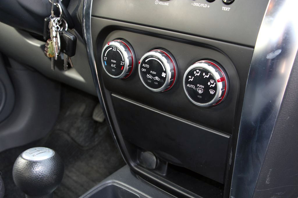 Utasterében néhány, alig feltűnő, de azért észrevehető apró karcolás mutatja a 6 éves használatot, egyben azt is, hogy a kombisan meredekhátú SX4 kiváló univerzális autó, hátsó üléseit előrehajtva egészen sok cucc bepakolható az úgy kapott sík padlójú térbe. Alaphelyzetben egyébként 270 literes, ma már csak kisautósnak nevezhető, de szemre egészen tágas a csomagtér. Szintén nem feltűnő, hiszen pontosan az ülésekre passzoló, de utólagos huzat óvja a gyakorlatilag sosem használt gyári üléskárpitokat. Nem csak az benne a jó, hogy az utólagos, méretre csináltatottat lehúzva új kárpitokat kapunk, hanem az is, hogy az utólagos sem gagyi, nyugodt szívvel fent hagyható, ha összekoszolódik, viszonylag egyszerűen levehető és kimosható. Ez, az utólagos kárpit sem túlzottan kopott, s a gyárilag bőrhuzatos kormány sem az. A volán ráadásul rádióvezérlős is, a GS ellátmány pedig olyan, SX4-ekben szokatlan extrákat is ad, mint hőfokszabályzós, automata légkondicionáló, oldal- és függönylégzsák, 4 (a vezetőnél automata) ablakemelő, elektromos, fűthető külső tükörpár, 6 hangszórós, MP3 és WMA lejátszós audiorendszer, ködfényszóró, ülésfűtés! A GS ellátmányú SX4-esek ráadásul 16 colos alufelnikkel hagyták el a gyárat, ezen mondjuk jelenleg nem az, hanem 15 colos acél van a téli abroncsokkal, a 16 colos nyáriak ugyanis – hozzánk hasonlóan – a jobb időt várják.