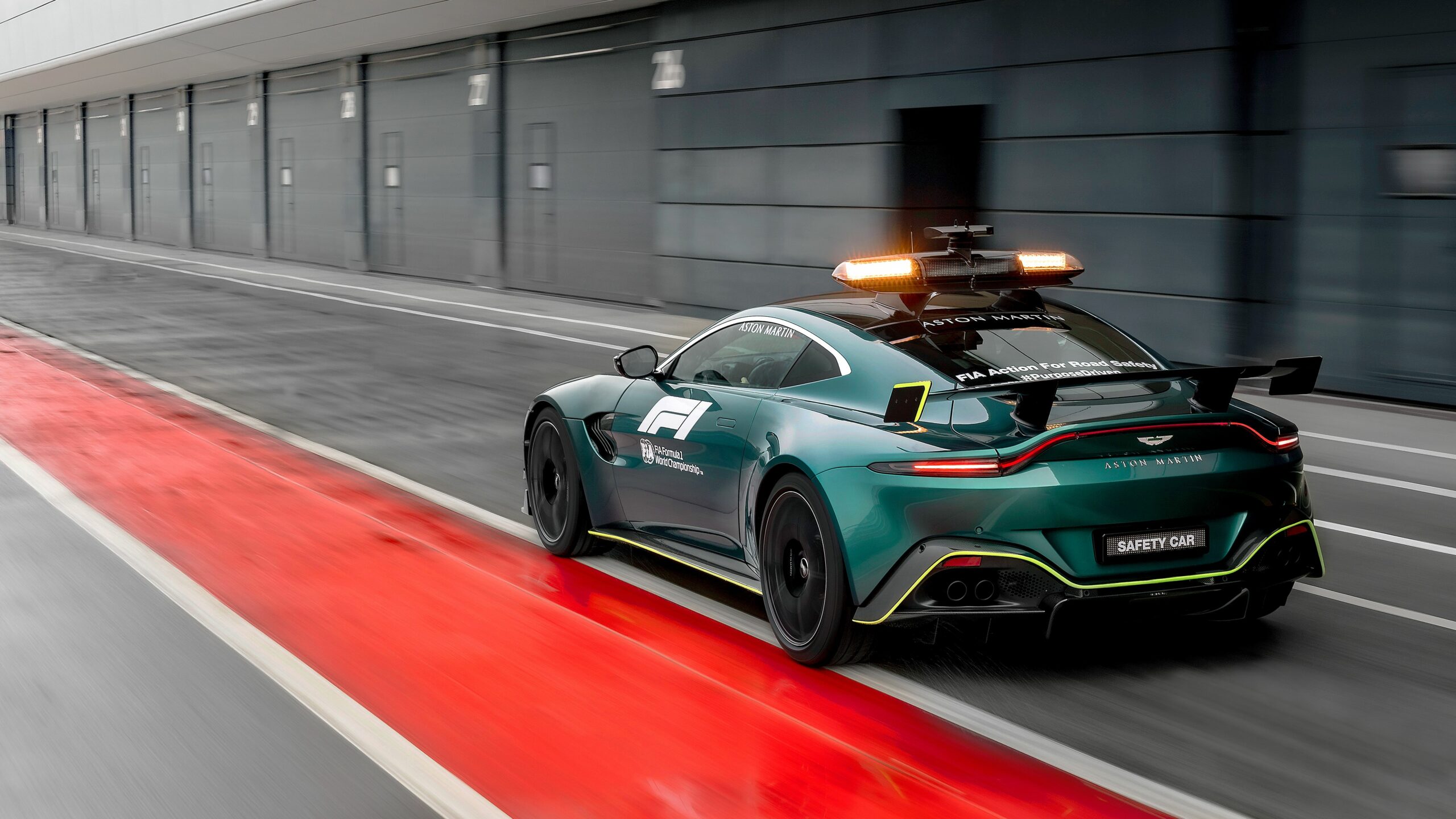 A világ leggyorsabb versenyautóival tartani a tempót nem egyszerű feladat, még akkor sem, ha valamilyen probléma miatt éppen korlátozva van a sebesség a pályán. A kihívásra a Vantage-ot találták megfelelőnek, melynek négyliteres, duplaturbós V8-as motorja eredetileg 503 lóerőt termel, de a nemes feladat teljesítéséhez feljebb tornázták az erejét 528-ra. A maximális forgatónyomaték ugyanannyi maradt (685 Nm), de szélesebb fordulatszám-tartományban érhető el, így még több helyzetben alkalmas nagy tempó diktálására. A biztonsági Vantage megkapta a nemrég opcióként bevezetett csíkozott hűtőrácsot, ami a hatalmas hátsó szárnnyal és további aerodinamikai kiegészítőkkel 60 kg-mal több leszorítóerőt termel 200 km/h-s tempónál, mint egy utcai Vantage.