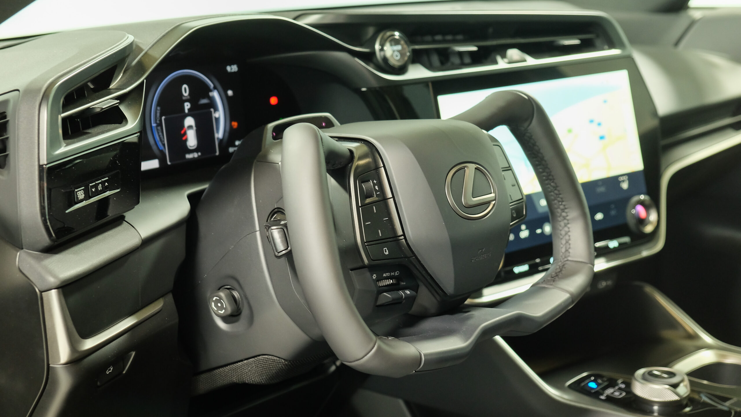 Nyilván van sebességfüggő védelem, magas tempónál komoly ellenállás, ezt azonban egyelőre nem tudtuk kipróbálni a statikus próbán, a Lexus viszont azt ígéri, remek visszajelzéseket ad, egyszerre szolgálhatja a kényelmet és a sportosabb, közvetlenebb vezethetőséget, megmutatja, de azért távol tartja az úthibákat és persze oldalszél-védelmet is ad. A Lexus Tazuna filozófiája (amit a lovas által a ló irányításához használt gyeplővel végzett apró mozdulatok ihlették – ezt jelenti a „Tazuna” a japán nyelvben) még tovább fejlődhetett a minden eddiginél közvetlenebb kormányzással. Míg a mechanikus kapcsolat nélküli kormányzás egyelőre opciós, a Direct4 névre keresztelt, ugyancsak mechanikus kapcsolat nélküli és a tengelyek közötti nyomatékosztást ezredmásodpercek alatt az aktuális igényekhez igazító összkerékhajtás alapáras az RZ 450e esetén.