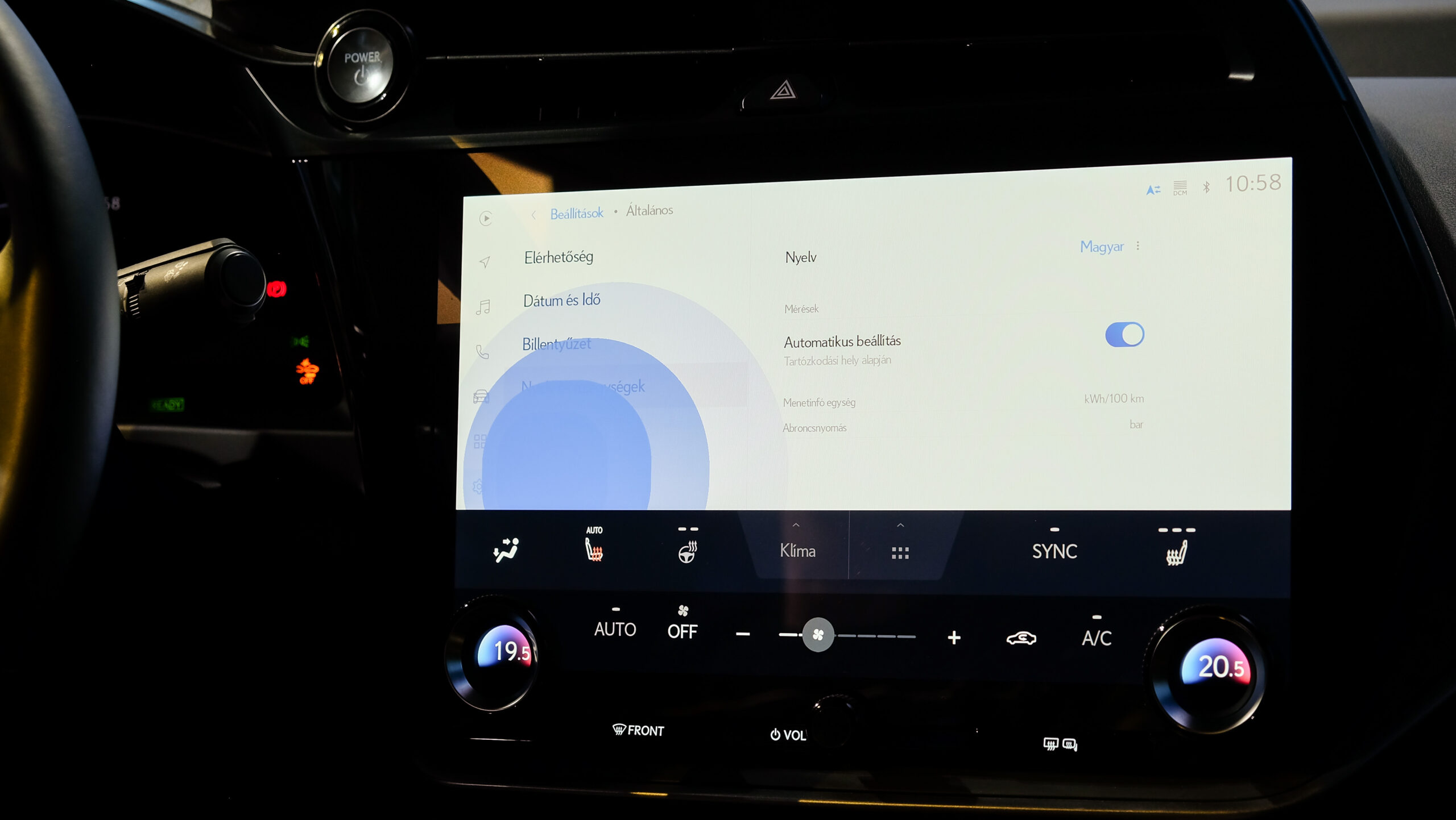 Vezeték nélküli telefontükrözést, magyar nyelvű menüt, sőt magyar nyelvű hangvezérlést is kínál az NX-ből ismerős hatalmas képernyő