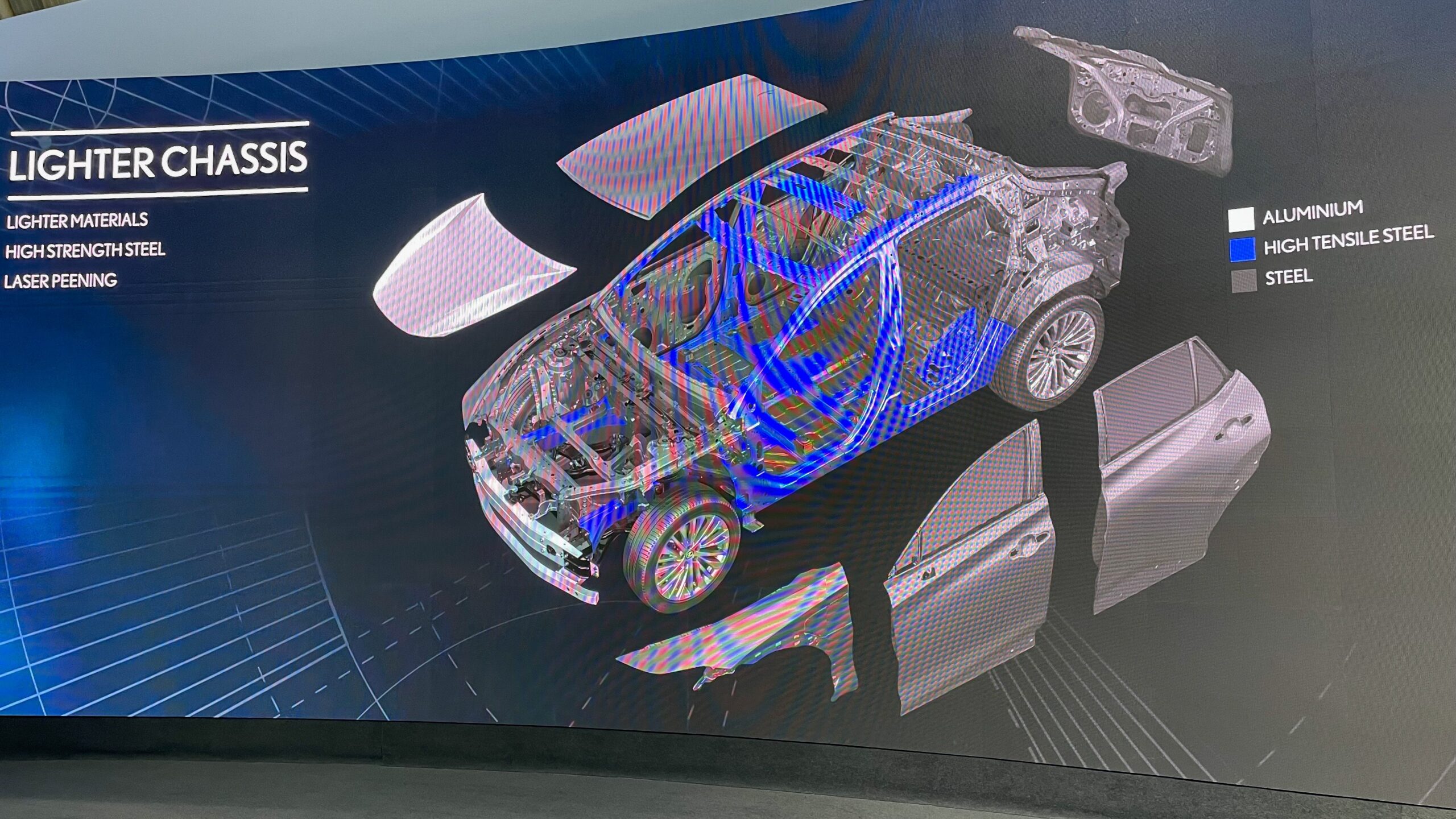 Az első villanymotor (e-Axle) 150, a hátsó 80 kW teljesítményű, az összteljesítmény 313 lóerő, nyomatékból 435 newtonméterrel lehet gazdálkodni. Vannak a piacon többet ígérő modellek, de ezzel is megvan az 5,6 másodperces 100 km/órára a gyorsulás, a végsebességet pedig 160 km/órában korlátozták, hiszen egyértelmű cél volt a használhatóság. A kínai verzió ráadásul még jobb, 5,4 másodperces 100-as sprintet ígér (megeshet, hogy könnyebb lesz), az eladások 50%-át várják amúgy Kínától, 25-25%-át az Egyesült Államoktól és Európától. Bár a részletes fogyasztási és töltési adatok még nem publikusak, az igen, hogy nagyjából 18 kWh/100 km kombinált értéket és mintegy 400 kilométeres hatótávot céloznak, ez már teljesen élhető kategória. Tine Poels termékmenedzsertől azért megtudtuk a bemutatón, hogy 11 kW-os AC és 150 kW-os DC tölthetőség "várható", utóbbival a 80%-os telítés fél óra alatti, előbbivel a teljes töltés 7 órás. A fogyasztást valós használatban 15-20%-kal a konkurencia értékei alá ígérik, ami kifejezetten jó ajánlólevél, teljes értékű használhatóságot jelenthet.
