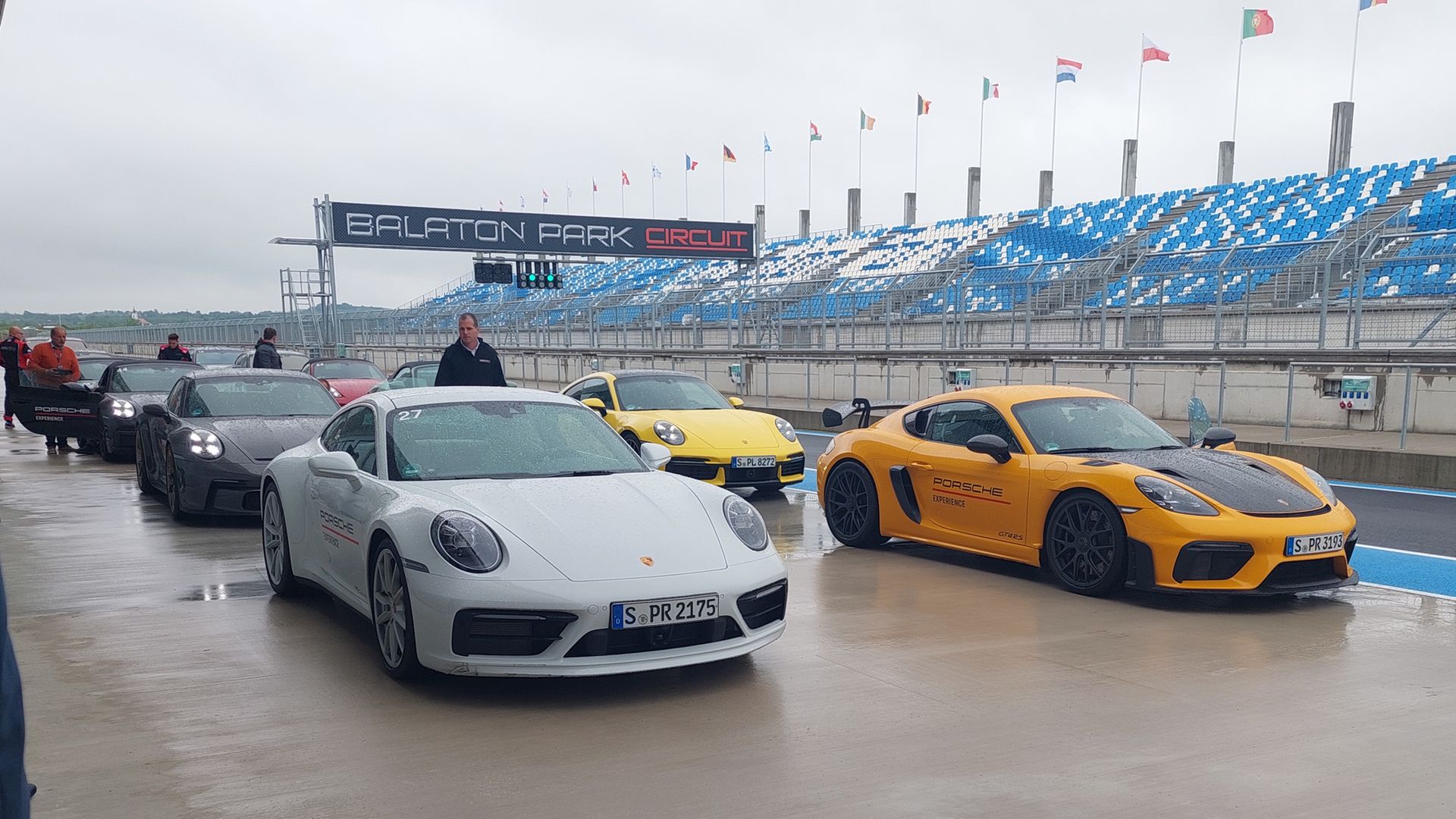 A sajtótájékoztatók után viszont a szervezők nem csak elméletben, gyakorlatban is igyekeztek nekünk megmutatni az új versenypályát. A bemutatóhoz remek érzékkel Porschékat választottak, így a vasak miatt tényleg nem érheti szó a ház elejét. A szemfülesek még ebédidőben profi szimulátorokon is begyakorolhatták a pálya vonalvezetését GT autókon, valamint alacsonyabb kategóriás formula autókban is. A cudar időjárás miatt azonban eléggé korlátozott keretek között lehetett kipróbálni az aszfaltot, igaz erről legkevésbé sem tehettek a szervezők. A kezeim közé egy 718 Spider került, a technika adott volt a főkajári attrakció feltérképezésére.