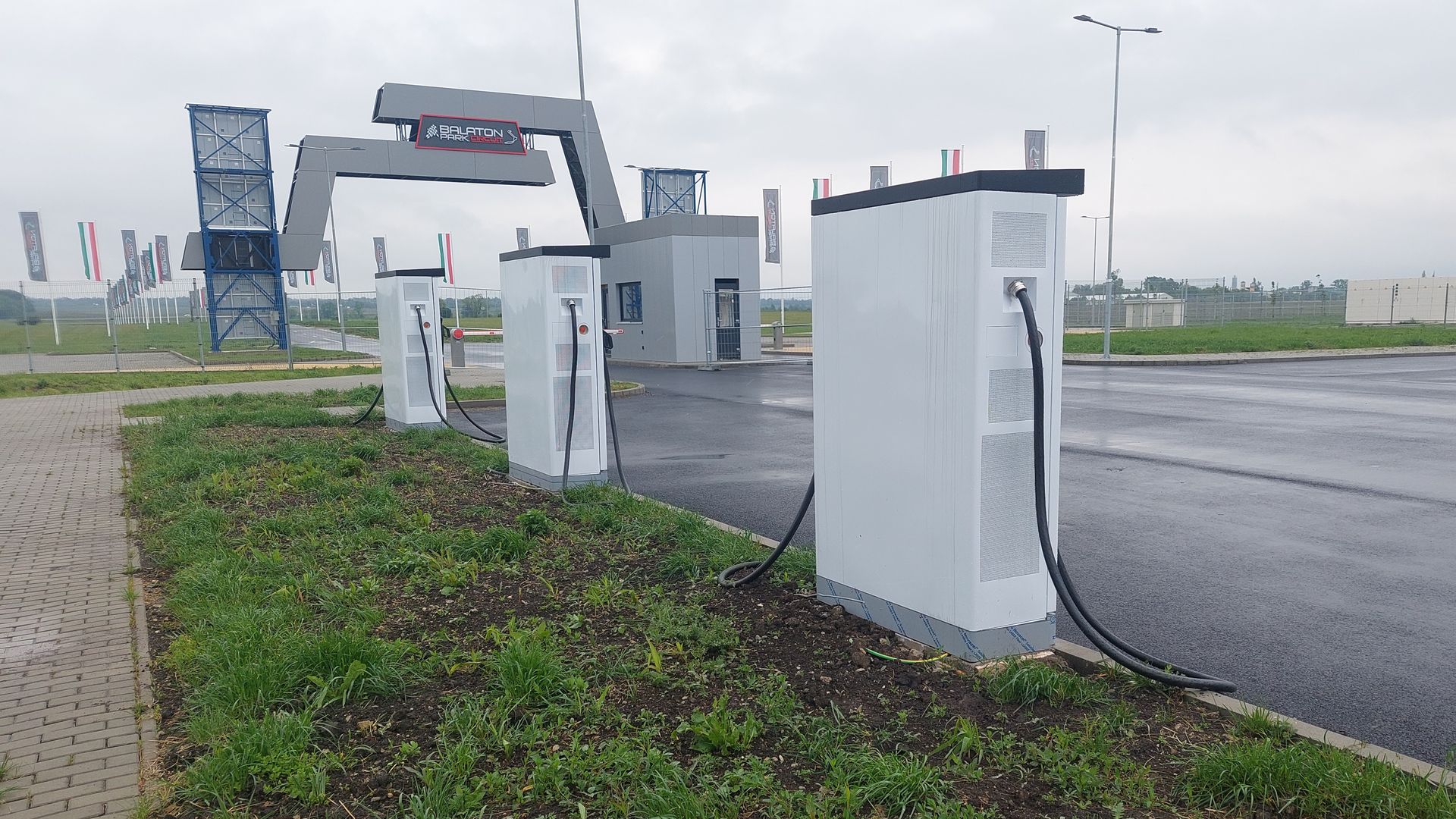 Nemcsak a versenyzőknek, a nézőknek is jutott aszfaltozott parkolóhely, valamint az EV-töltőket is kifejezetten a látogatóknak szánták, ezt bizonyítja az elhelyezése is