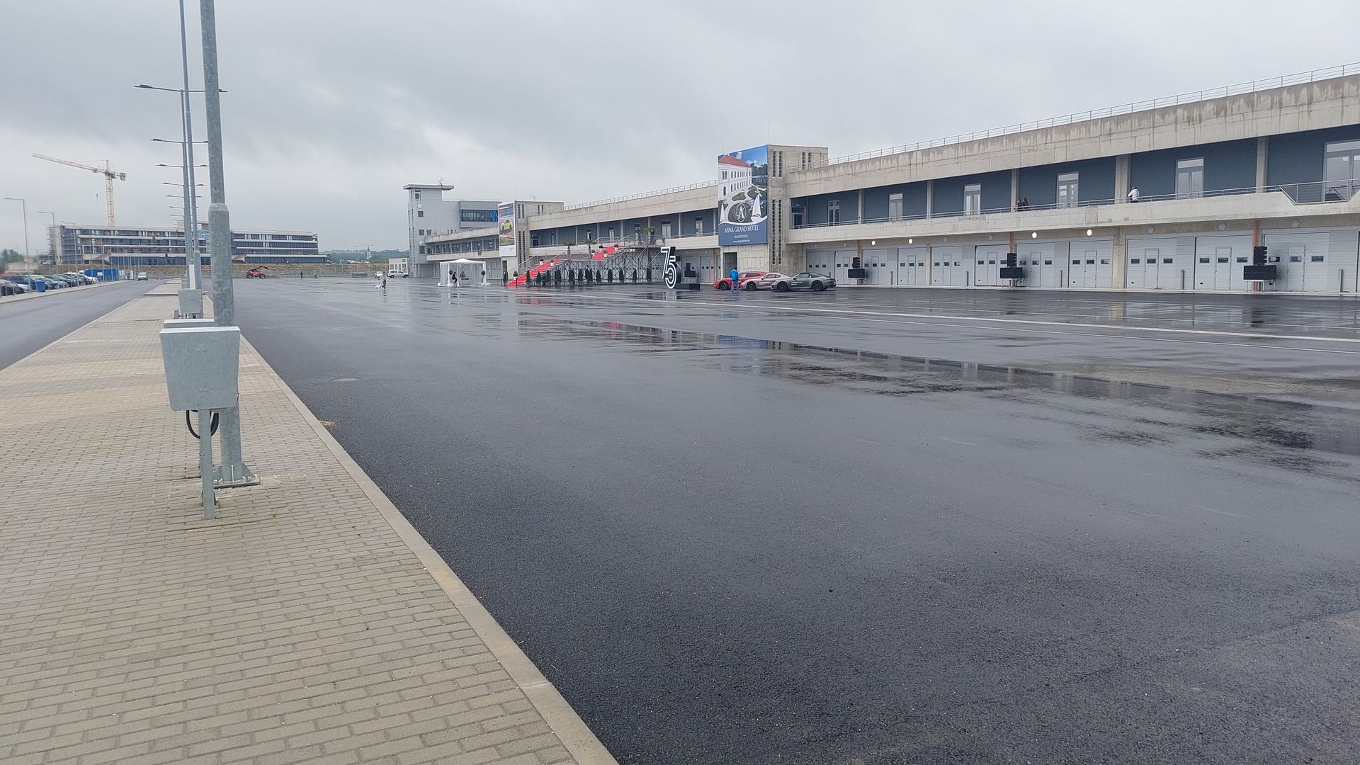 Már a bejáratnál látni hogy egy modern létesítményről van szó, a hatalmas LED-falak tényleg egy korszerű versenypálya képét vetítik előre. A sorompók után rögtön jobbra EV-töltők, így még inkább erősödnek az előbb felvázolt érzések. A parkolóban aztán megpillantja az ember a boxépületet és ekkor végképp rádöbben, nem csak marketing fogás volt az FIA és FIM licencek igénylése, de erről később. Összesen 48 garázzsal gazdálkodhatnak az idelátogató szériák, illetve három paddock területtel, amelyek akár össze is köthetőek. A beállók felett modern kiszolgáló létesítmények illetve kicsit messzebb egy 4 csillagos luxushotel, melynek szobái a pályára néznek - majd, ugyanis az átadó idején ez még csupán szerkezetkész állapotban volt. Az elkészült helyiségek viszont ízlésesen vannak berendezve, mindegyikbe öröm belépni, de azért érződik, hogy "még be kell lakni" a pályát.