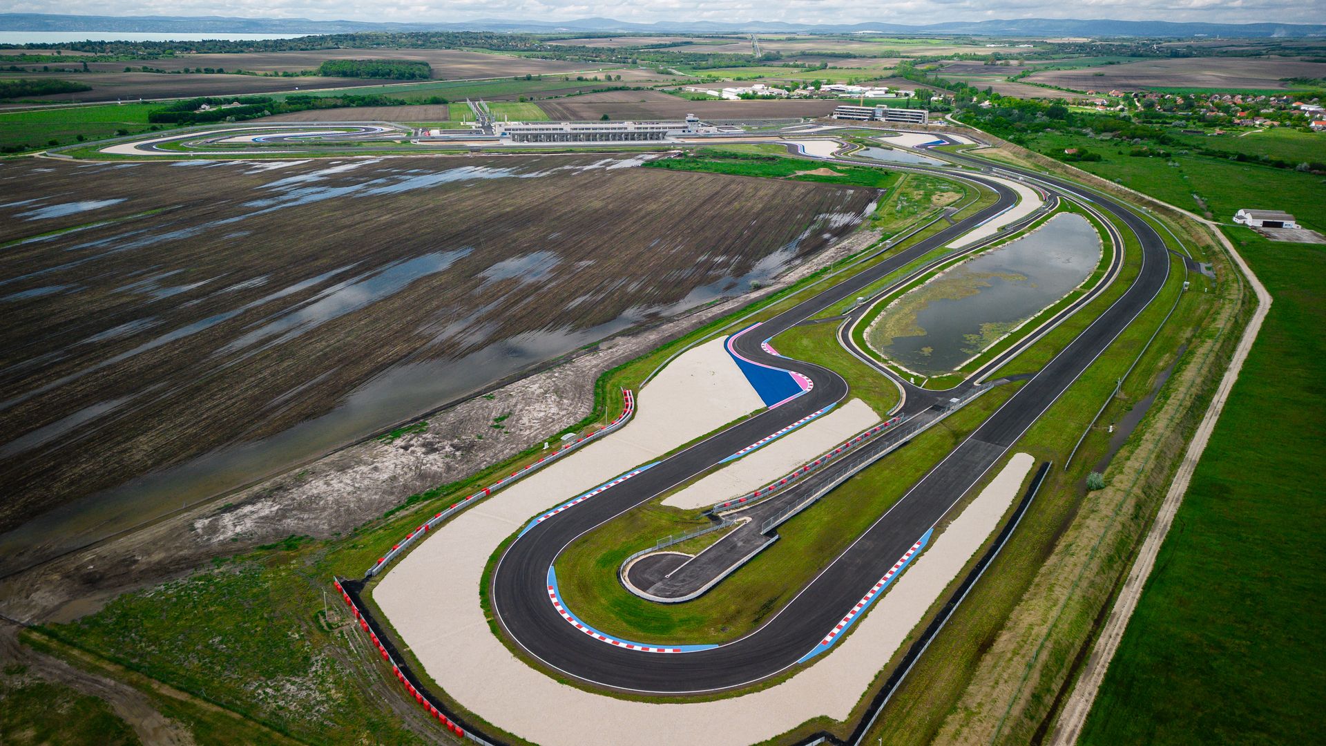 Különleges látni a versenypályát madártávlatból a Balatonnal a háttérben