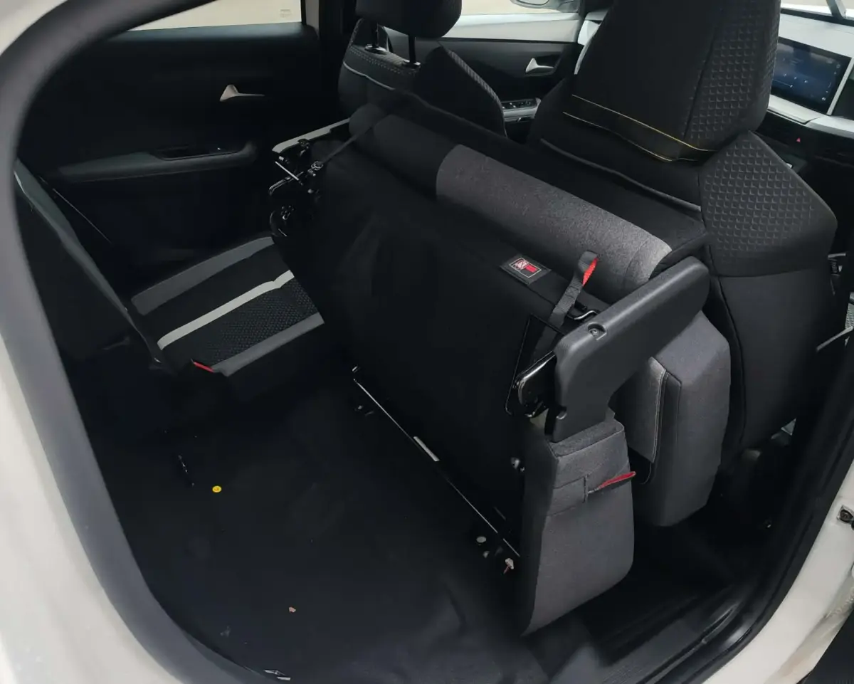 Ne kerülgessük viszont tovább a forró kását: a Frontera nagy előnye, hogy hivatalosan, szabályosan utazhat benne hét személy. Az első két sorról, illetve az 5 ülés mögötti csomagtartóról már esett szó bőséggel a korábbi Frontera tesztünkben, éppen ezért most a harmadik üléssora helyezem a hangsúlyt. Előre le kell viszont szögezni, hogy a két szükségülés lényegében egyetlen pozitív tulajdonsága, hogy létezik. Az ülőlap és a támla egyébként korrekt, csak épp a lábaknak nincs hely, így rövid távokon, vagy átmeneti megoldásként tökéletes, ám hosszabb utakra kényelmetlen a két leghátsó ülés, még akkor is, ha amúgy USB-C töltő is jutott a harmadik sorba. A csomagtartóról pedig konkrétan le kell mondanod, ha mind a 7 ülőhelyre szükség van, legfeljebb néhány zacskót tudsz a támla és a csomagtérajtó közé préselni. Kompromisszum tehát akad, de létezik olyan felhasználási mód, amikor ez a tökéletes csomag.