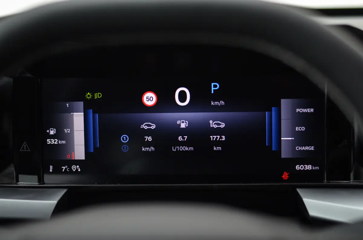 Összességében ugyanis a gyengébb változat is nyomatékos, még autópályán is tudja tartani a tempót. Ha versenyautót keresel, akkor egyébként is rossz helyen jársz, és nem csak a középszerű teljesítmény miatt: a futómű sem alkalmas száguldozásra. A testvérmodell C3 Aircrossnál egyértelműen feszesebbre hangolták, de ettől még érezhetően egy olcsó megoldás marad. A diszkontmotor és a filléres felfüggesztés azonban egyáltalán nem bántó a méreteihez képest könnyű, hét üléssel és hibrid rendszerrel is 1,4 tonna alatti karosszériában. A viszonylag alacsony tömeg és az elektromos rásegítés a fogyasztáson is érződik: sok autópályázással és érezhető mennyiségű városi dugóval is megállt 6 liter környékén a visszatankolás szerinti mérésem, ami ebben a méretosztályban, ezért az összegért kiemelkedő.