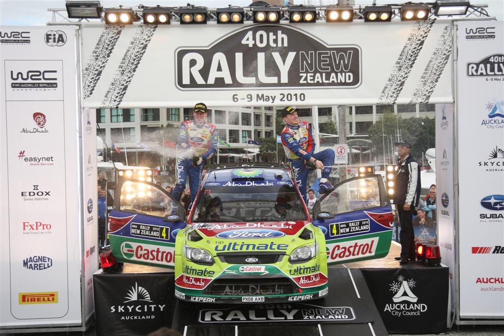 Ogier lett a második, akitől ez hihetetlenül nagy teljesítmény. Sokkal nagyobb, mint Latvala győzelme vagy Loeb szombati napja. A fiatalabb Sébastien most járt először az Új-Zéland Ralin, semmi tapasztalata nem volt a versenyen, ráadásul ez mindössze a második szezonja WRC-vel. A franciáknak van erre egy nagyon találó kifejezésük: Oh là là. Solberg kiesése után Loeb jött fel a harmadik helyre. Az utolsó napon tért csak kicsit magához Mikko Hirvonen, aki zsinórban a második indiszponált versenyét futja. A negyedik hely pedig nem éppen az az eredmény, amivel Loeb ellen fel lehet venni a versenyt a világbajnoki címért. Az első ötből talán Dani Sordo volt a legszerencsétlenebb, aki többször is ott forgolódott az élen, ám végül csak ötödik lett 25 másodperces hátránnyal. Neki sem akar valahogy összejönni az a kis plusz, amivel meggyőzhetné a Citroënt, hogy jövőre is tartsák meg Loeb csapattársának és ne Ogier-t vigyék a nagy csapatba. Az ötödik hely után következett egy nagy szakadék és Sordótól is három perccel lemaradva lett hatodik Matthew Wilson, hetedik pedig Henning Solberg. Az első Szuper–2000-es győzelmét arató Jari Ketoma szerezte meg az abszolút nyolcadik helyet, míg az S2000-es vb-t továbbra is vezető Xevi Pons a kategóriában a második, abszolútban pedig a tízedik lett. Kettőjük közé ékelődött be Federico Villagra a Munchi’s–Ford WRC-jével.