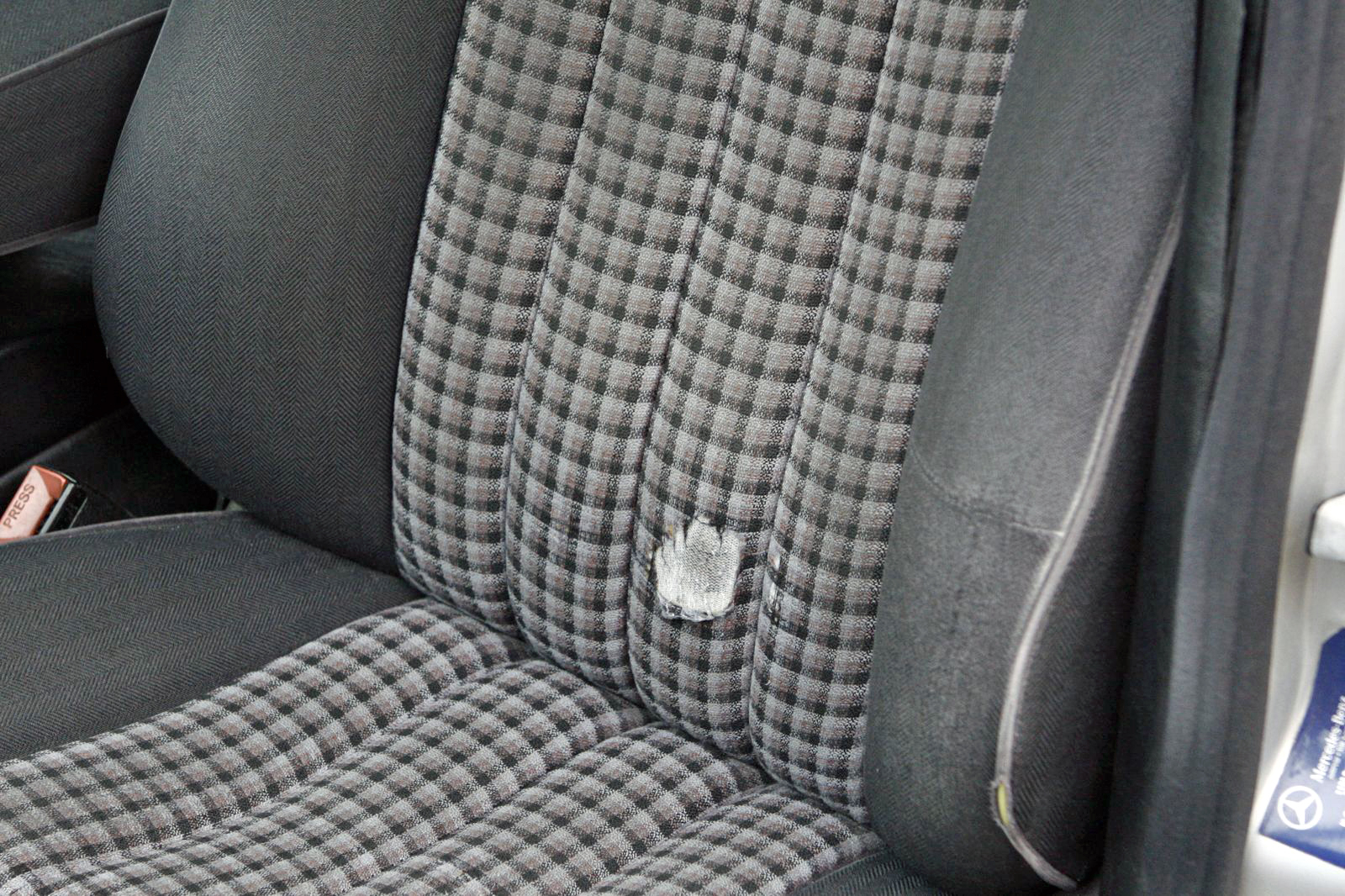 A rendes Mercedesek fűtése alapáron két zónában szabályozható már vagy 50 éve, a párásodásra igen hajlamos régi Opel után a rendszer fölénye megkérdőjelezhetetlen volt. A műszerfal bár egyszerű rajzolatú, ha a tulaj veszi a fáradtságot és az évek alatt esetleg kiégett rizsszemizzókat mind kicseréli, ha nem is egy ambient lightos fényár, de a jó átláthatóságot és a biztonságot szolgáló decens rend lesz koromsötétben is. Mivel taxi volt, gyakran állt csak majdnem szabályos helyeken, ezért a vészvillogó műszerfali kapcsolója is már csak piros volt az eladáskor, a háromszögminta rég lekopott róla. A gyakori ki-beszállások a vezetőülés kárpitját elég csúnyává tették, egy fél hasábot az otthon feketén még a nyugdíj mellett is dolgozó, egykori Kárpát utcai szaki kicserélt, de az eladás idejére ez a folt is kilyukadt már. Külön az eladásra - a rendszeres takarításon felül - nem lett kitisztítva a beltér sem, ezért maradt az ajtókárpiton egy tipikus taxis zsírfolt, de még az ajtóbehúzó kifényesedése is sokkal kevésbé zavaró, mint ahogy a modernebb autók felületileg színezett, igénytelen műanyagjai megkopnak a Merci futásának a harmada alatt.