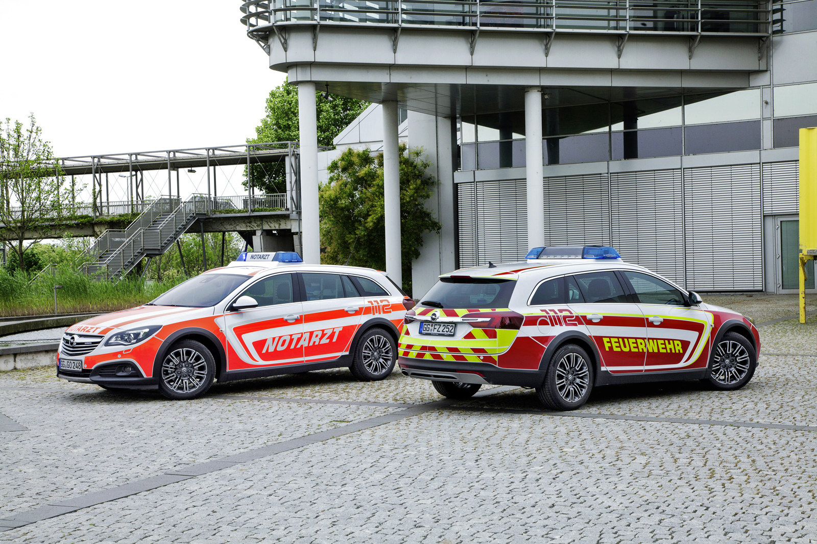 Az Insignia Country Tourer mentő és tűzoltó változata is feltűnő mintázatot kapott. A fehér alapautókra a mentőnél narancsszínű csíkozás és kék felirat került. A kiegészítő fényforrásokból a tetőn kívül a hűtőmaszkra és a csomagtérajtó belsejére is jutott, így ha az fel van nyitva, akkor is messziről látható marad a mentőegység. A beltérben van 230 voltos csatlakozó és foglalat a mentőszolgálatnál használt rádiókhoz. A mentőhöz hasonlító tűzoltóverzió sötétvörös mintázatot és "kihúzófilc sárga" feliratot kapott, természetesen arra is felkerült a nemzetközi 112-es segélyhívószám.