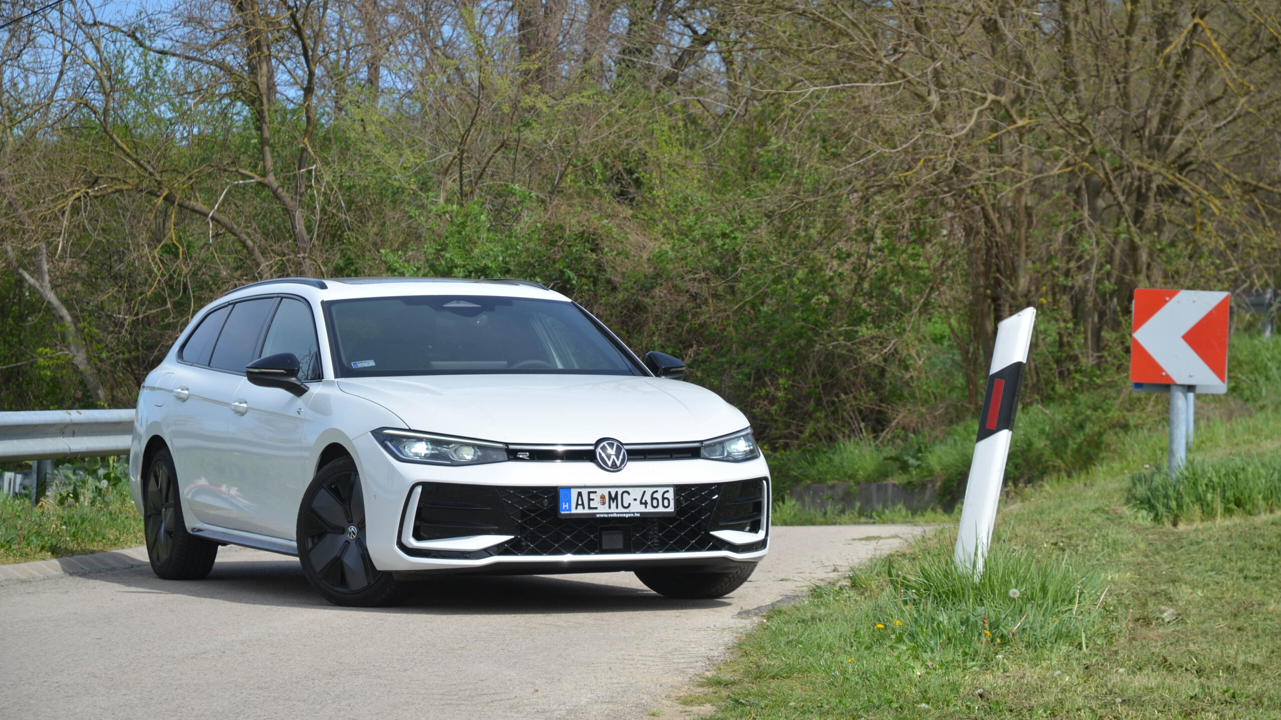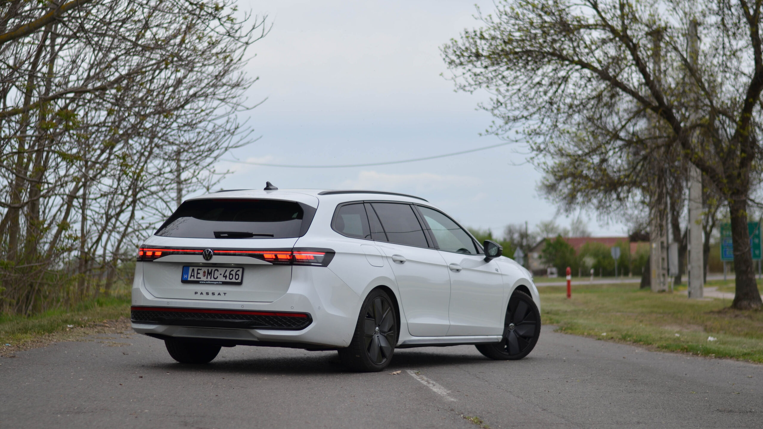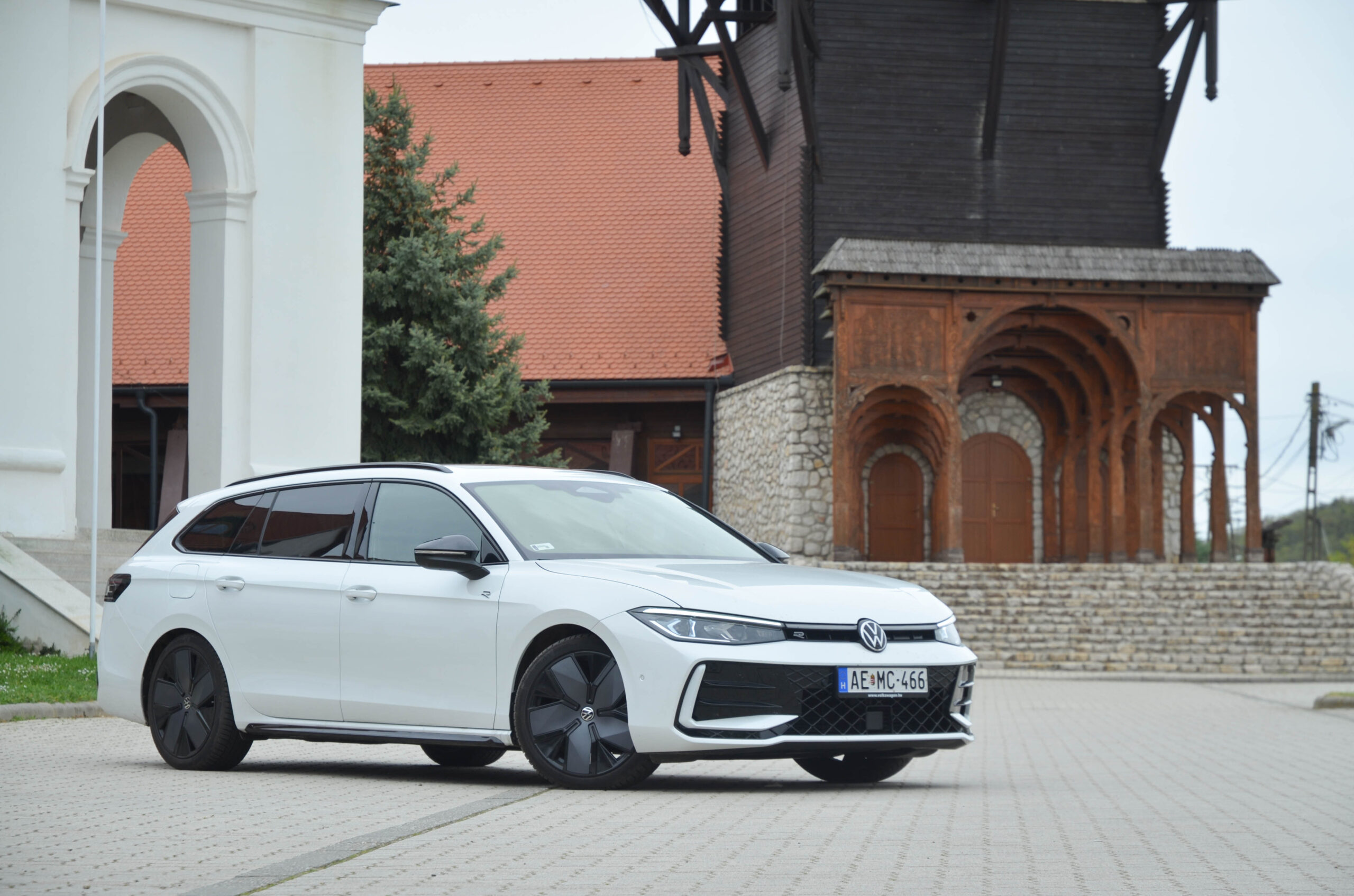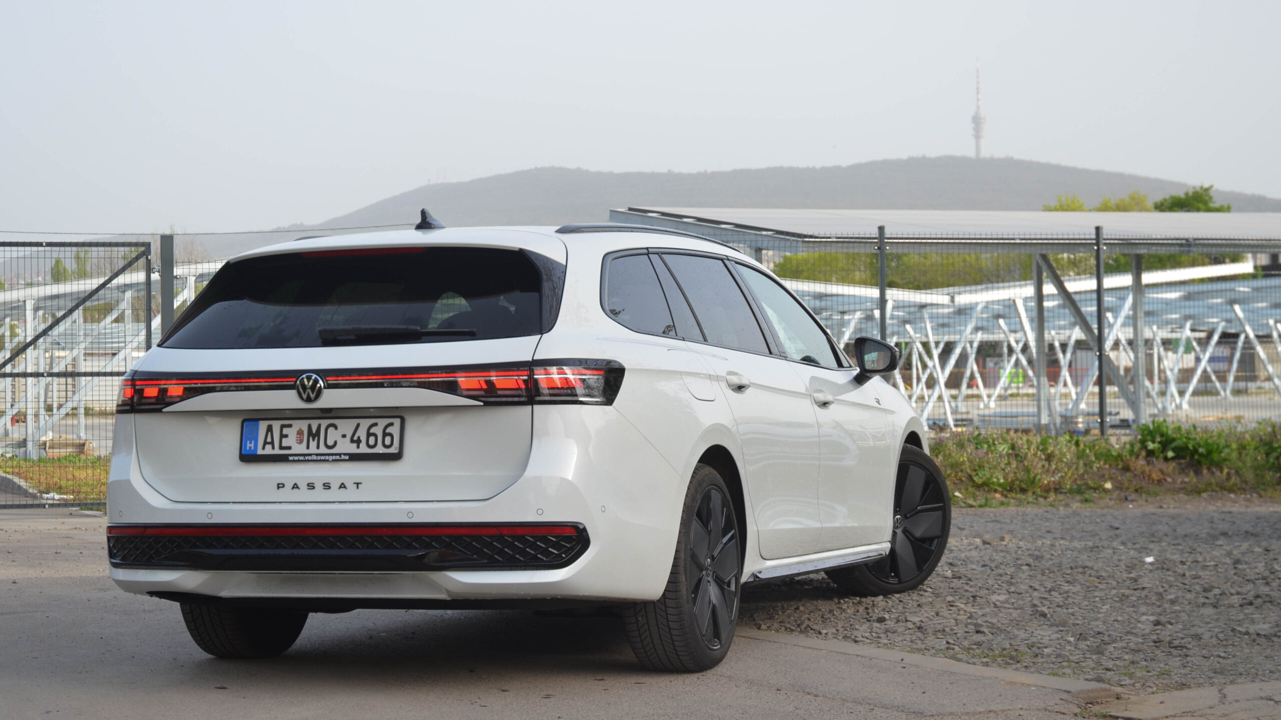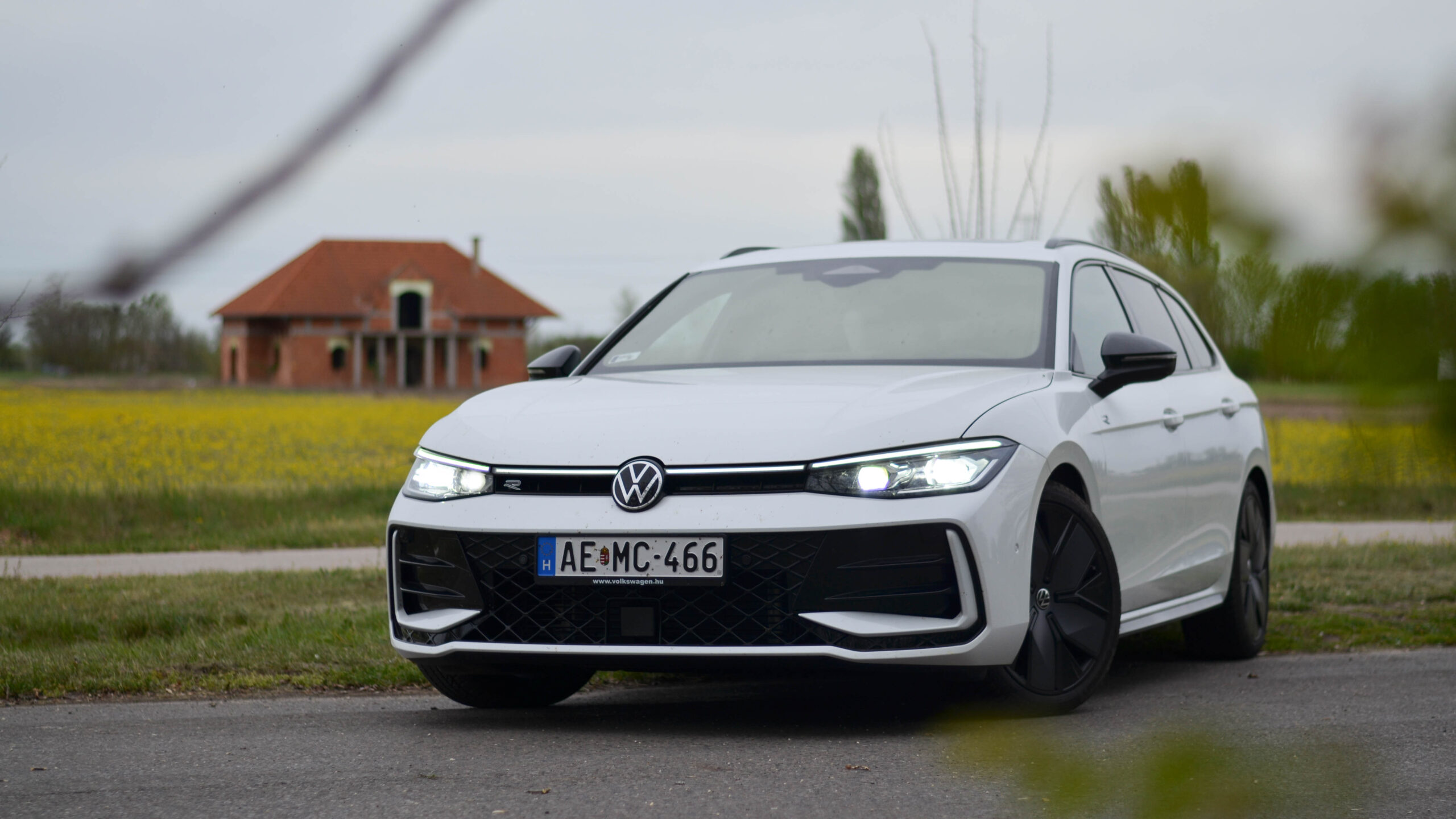Radikális változás az előző Passathoz képest a 9. generáció, már ami a látványt illeti. A Volkswagen legújabb, lekerekített formavilága megosztja a közönséget ezen a hatalmas, családi kombin, ám az R-Line csomag valamelyest enyhíti a helyzetet a vadabb lökhárítóival és a sötét felniszettel. Ettől azonban még közel sem lesz versenyautó a Passat, főleg nem a 2,0 literes dízelmotorral. Egy ilyen autót hoztunk el egy alapos, 1000 kilométer feletti vegyes tesztre, ahol autópályán, országúton és városban is próbára tettük.