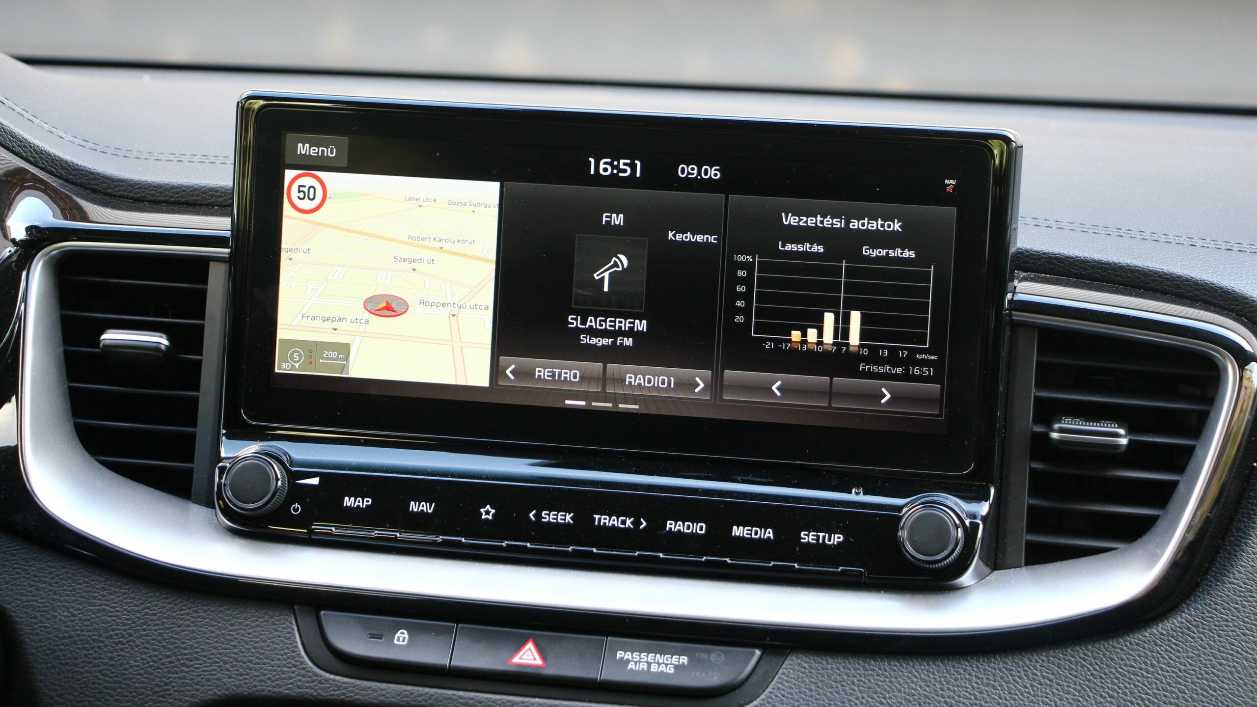 A Kia 136 lóerős CRDI motorjáról nem szeretnék terjengősen beszámolni. Kellemes szerkezet, hidegen hangos, bemelegedve kevésbé, de senki ne várjon síri csöndet tőle. Az autó viselkedése is egy arany középút. Se túl feszes, se túl lágy, ebben a kategóriában pont ez a lényeg, hogy széles vásárlóréteg számára legyen megfelelő. Bár van üzemmódválasztó, ami enyhén sportosabbra szabja az autó viselkedését, ezt simán kihagynám belőle. Az XCeed egy kényelmes családi crossover, megfelelő erővel, nem kell ezt túllihegni. Viszont a lágy hibridség más területen is előnyére válik az autónak. Például a stop-start rendszer működése jóval kifinomultabb vele. Emelkedőkön is besegít az indítógenerátor, illetve erőteljes gyorsításkor is jól jön a plusz nyomaték, amikor pedig kigurulunk, például piros lámpához közeledve, képes leállítani a motort a rendszer, hogy addig se pöfékeljen. Szóval kényelmi extraként is felfogható, ahogy a 7 fokozatú, duplakuplungos automataváltó is. Remekül sikerült szerkezet, nincs különösebb megtorpanása, amikor hátramenetbe kapcsoljuk, felfelé váltogatva pedig tényleg észrevétlenül teszi a dolgát. Nem tapasztaltam, hogy butaságokat csinált volna, meredek emelkedőn sem bénáskodik (például mélygarázsból kihajtva). Tényleg nagyon kényelmes, igazából egy porcikám sem kívánná manuális váltóval az XCeedet, pedig semmi baj a Kia kézi váltóival, de egyszerűen annyival megdobja a komfortot az automata, hogy szerintem érdemes rá áldozni 500 ezer forintot.Még mindig van értelme a dízeleknek