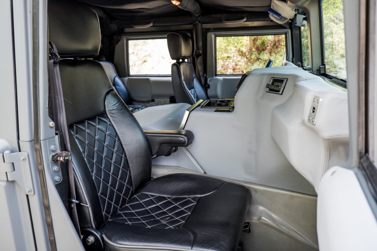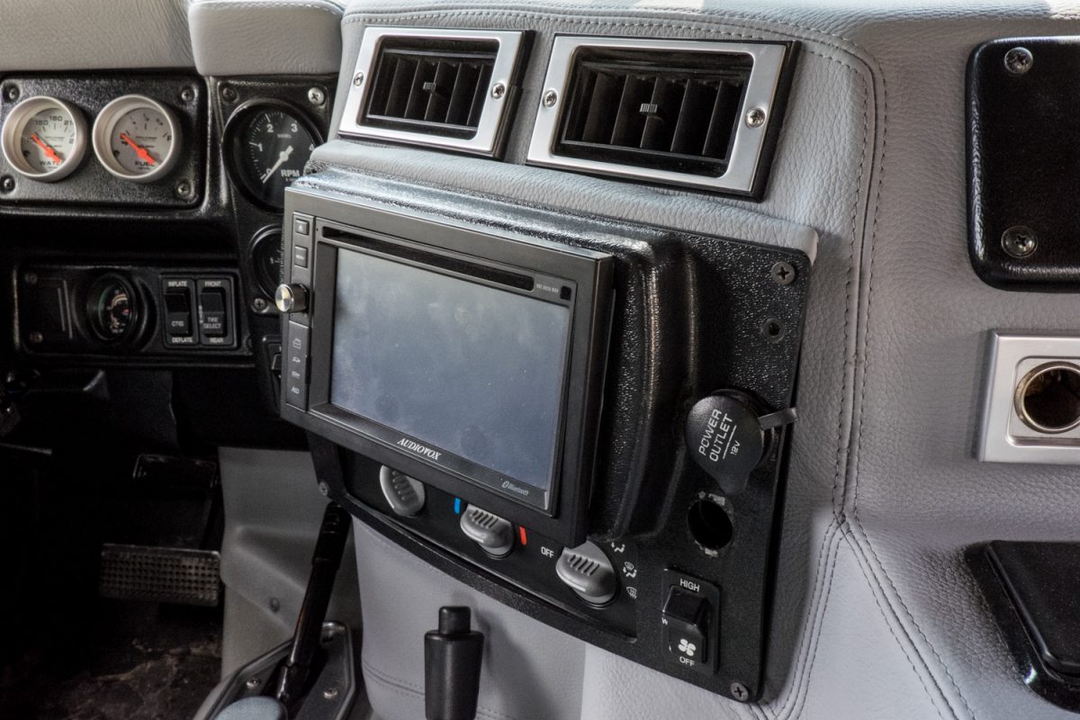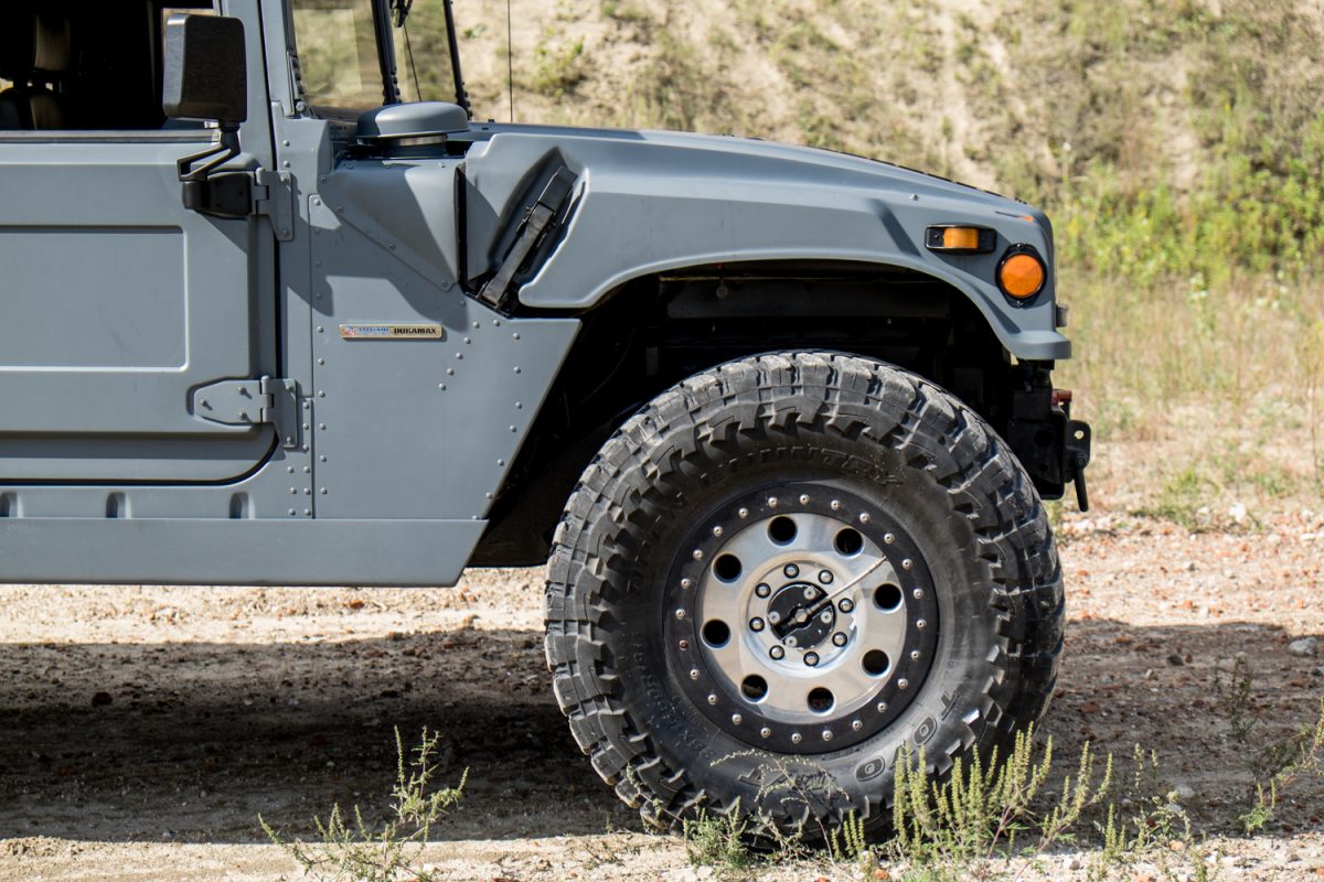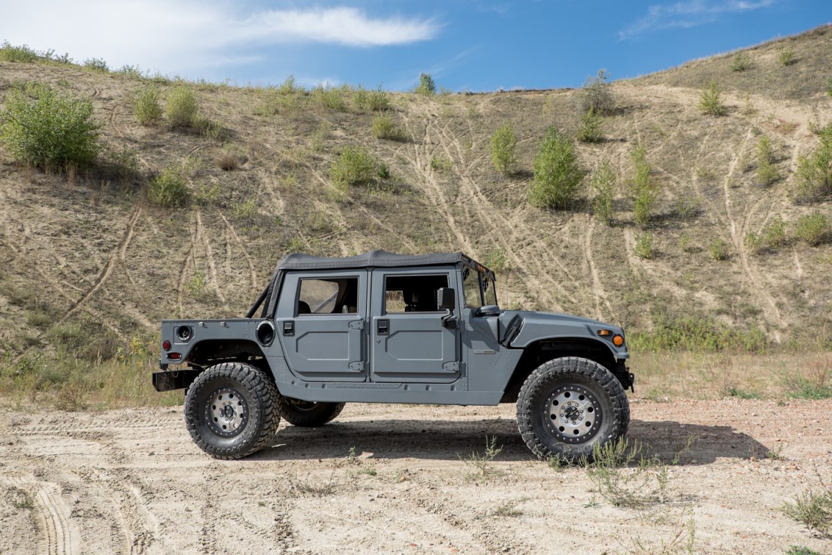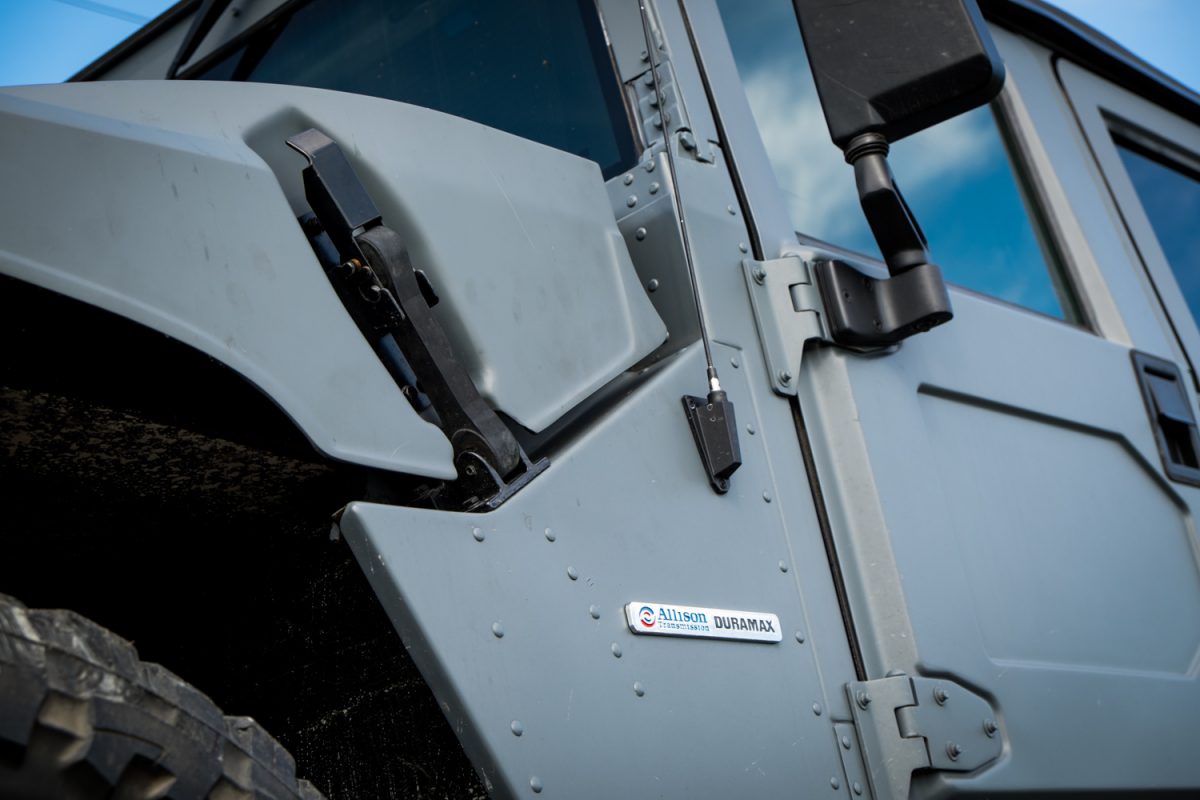 Amerikából érkezett, ahol sárgára fényezve gurult ki az AM General gyárából, itthon teljes felújításon esett át, aminek során a puritán beltéren is változtattak. A külsőhöz passzoló szürke bőrbe húzták a lehető legtöbb alkatrészt, megtartották a gyári üléseket, de rombuszmintás bőrhuzatot kaptak. Nem tolták túl, épp csak egy kis luxust kapott a kényelem jegyében, valamikor korábban kapta a Momo kormányt és az utólagos körműszereket is, amik közül a benzinszintjelző folyton mozog, így nehéz belőni, pontosan mennyi lé van még az aktuálisan kiválasztott tankban. Ugyanis abból is kettő van, egy 95 és egy 65 literes, külön betöltőkkel, szintén egy gombbal válthatunk közöttük. Hajtáslánca már nem teljesen az eredeti, bár a 6,6 literes Duramax V8-as dízelt szerelték a H1-be, de csak az utolsó, 2006-os Alpha szériába, az 5 fokozatú Allison automata váltóval együtt. A gyárilag 305 lóerős motor még Amerikában kapott egy kis pöckölést, így most nagyjából 370 lóerőt teljesít.