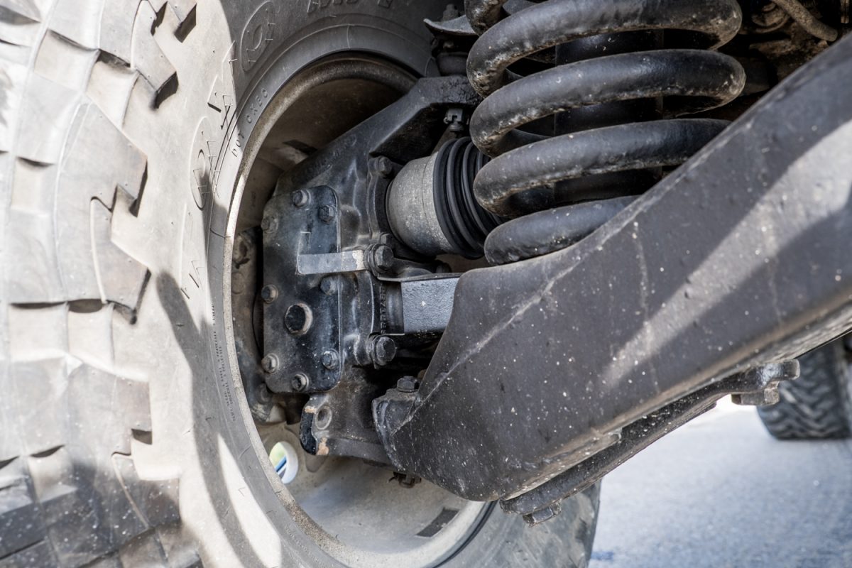 Középre kerültek a fékek, a kerékagyak kihajtása lejjebb van, mint ahol a féltengelyek csatlakoznak, alulról egész sima és piszkosul magas
