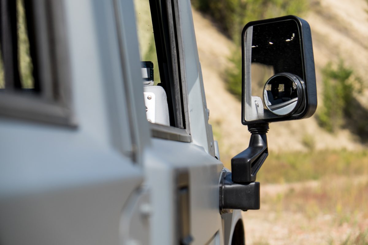 Méretei nem változtak, 3,3 méter a tengelytáv, közel 4,7 méter hosszú, és majdnem 2,2 méter széles. Magasságban alulról karcolja a két métert, minden mai autónál magasabb. Csak viszonyításként egy BMW X5 picivel magasabb csak 1,7 méternél, a Hummer H1 1956 mm, szóval a legnagyobb BMW-ből is felnéznek ránk. De tulajdonképpen mindenből, ami nem kamion, gazdája nem is megy be vele a fővárosba, csak a külső kerületek játszhatnak, joggal. Az egy dolog, hogy széles, de a tükrökben is alig látni valamit, ezt már szerencsére orvosolták egy utólagos tolatókamerával, aminek a kijelzőn megjelenő képe pont arra elég, hogy ne tolassunk rá a mögöttünk eltűnő Swiftre. Előrefelé a kilátás nem annyira lehetetlen, mint azt elsőre gondoltam, a két darabra osztott sík szélvédő óriási, a magas orr pedig úgy ível előre, hogy nem takar ki semmit, a lámpák meg kis túlzással szemmagasságba esnek.