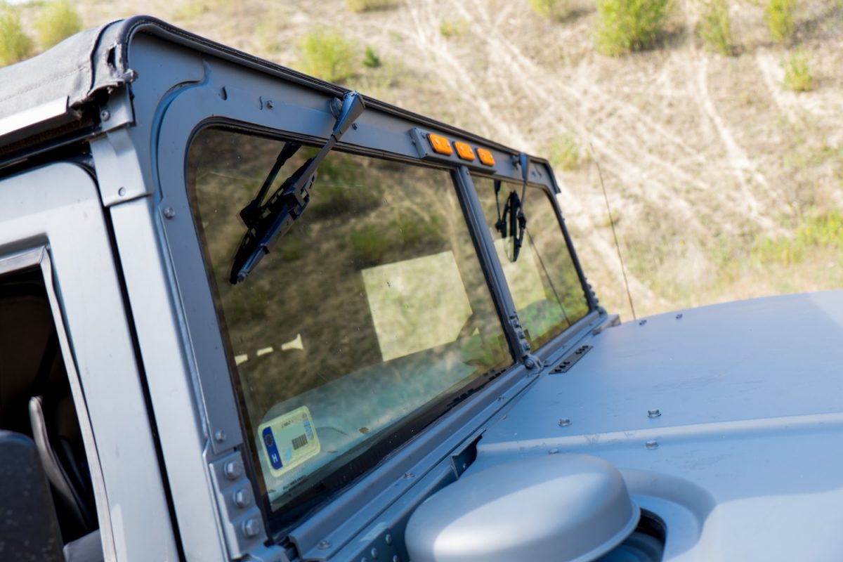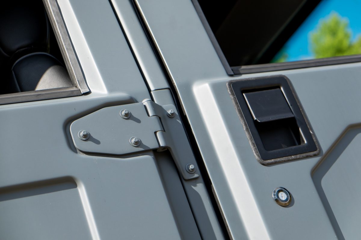 A karosszériaelemek formáit lemásolták, így a katonai kiegészítők helye is megvan. A szegecsek brutálisan mutatnak, a hatalmas gépháztetőt két vaskos gumis heveder fogja