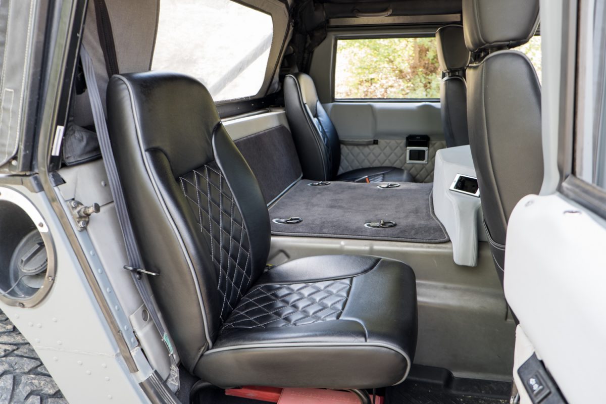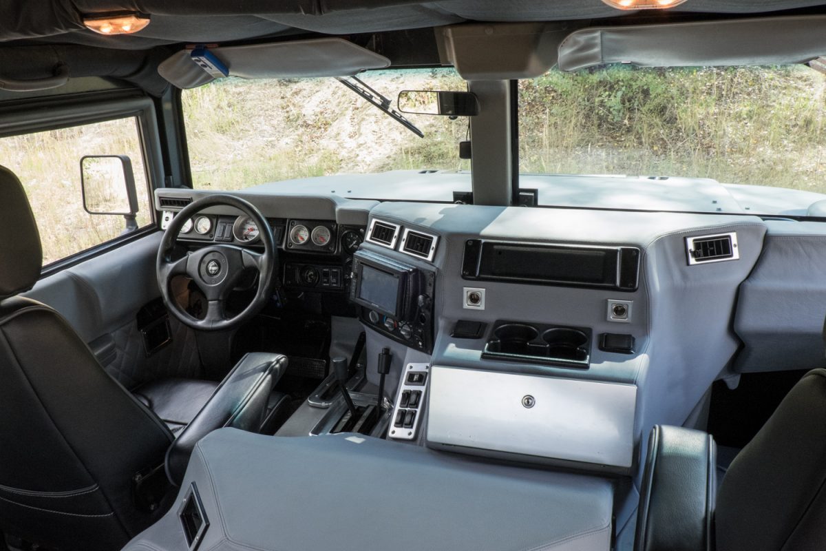 Az üléspozíció szintén váratlanul vállalható, a magas padló miatt a pedálok messze elöl vannak, a kormány sincs döntve, mint a teherautókban, így egészen személyautós, meglepően kényelmes. Az, hogy úgy ülünk benne, mint egy Defenderben, a karosszéria közepébe tolt motornak és váltónak köszönhető. Ezzel rengeteg helyet spóroltak a kocsi alatt, a hasmagasság óriási, cserébe viszont csak négy ülés fér el benne. Ez a hadseregnek még jól is jött, hiszen így a tetőre biggyesztett gépágyú lövésze középen tudott állni. Illetve számos további feladatra alkalmas így a beltér, az egészségügyiseknek átalakított Humveekben így könnyen elfért például a hordágy. A Hummer H1 többféle karosszériával is készült, a ponyvatetős rövidplatós 1998-ban érkezett, a próbált példány is ebből az évből származik. A tetőt levenni borzalmasan nehéz, jelenlegi tulajánál egyszer vették le, mikor megkapta a matt szürke fényezést, de akkor is több órát küzdöttek a patentek, zipzárak és millió fül helyreigazításával.
